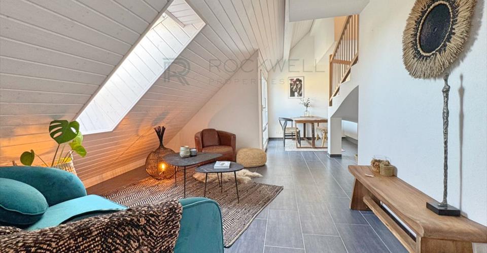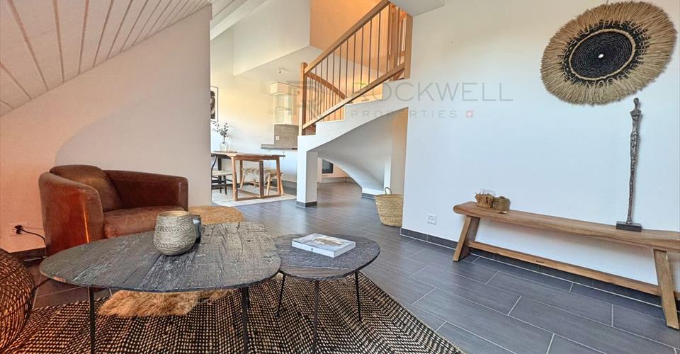 EN EXCLUSIVITE CHEZ ROCKWELL PROPERTIES ! Découvrez ce bel appartement de 4.5 pièces récent dans une petite PPE offrant une vue imprenable. Il est lumineux et a été construit en 2017 dans un ancien corps de ferme. Il est réparti de la manière suivante : Hall d’entrée avec espace de rangement, cuisine entière équipée avec des matériaux de qualité dont un plan de travail en granit, coin repas avec accès au balcon-baignoire avec vue dégagée, séjour, suite parentale avec salle de bains-wc-lavabo. A l’étage se trouve une belle et spacieuse salle de douches à l’italienne avec colonne de lavage, wc et lavabo puis 2 grandes chambres à coucher. Surface habitable de 106 m2. 2 places de parc obligatoires en sus du prix à CHF 40’000.- dont 1 place de parc intérieure et une place de parc extérieure. Cave fermée indépendante. Panneaux thermiques pour l’eau chaude sanitaire et la discussion est en cours au sein de la PPE pour la pose de panneaux solaires. Fenêtres double-vitrage en PVC et velux avec commandes électriques et stores obscurcissants. Les parquets sont en vrai chêne massif. Ne manquez pas l’opportunité de devenir propriétaire de ce bien d’exception. N’attendez plus pour tomber sous le charme de cet appartement unique, contactez-nous dès maintenant pour plus d’informations et pour organiser une visite !