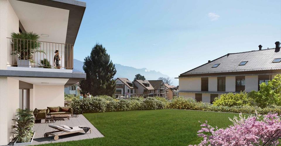 Projet L’Écrin – Lot 02 : Situé au rez-de-chaussée, cet appartement neuf de 4.5 pièces, bénéficie d’une surface de ~124.3 m² pondérés dont ~108.9 m² habitables, d’une terrasse de ~27 m² et d’un jardin de ~64 m². Cette nouvelle promotion se compose de 11 appartements de standing, allant du 3.5 au 5.5 pièces. Spacieux, lumineux et conçus avec des finitions haut de gamme, ils offrent des espaces de vie généreux qui se prolongent vers l’extérieur grâce à de vastes loggias, terrasses ou jardins privatifs. Dès le 2e étage, chaque logement bénéficie d’un panorama unique sur le lac Léman et les Alpes, pour un cadre de vie à la fois raffiné et privilégié. Cette nouvelle construction met en avant les dernières avancées en matière de confort et d’efficacité énergétique. L’immeuble est équipé de panneaux photovoltaïques RCP (auto consommation), d’une pompe à chaleur géothermique, d’un système naturel de refroidissement Freecooling et de domotique intégrée, garantissant une expérience de vie moderne, connectée et écoresponsable. Pensée pour allier élégance, modernité et durabilité, son architecture soignée s’intègre harmonieusement dans un environnement verdoyant et villageois. Favorisant également la mobilité douce, la résidence dispose d’un parking souterrain pré-équipé pour bornes de recharge électrique ainsi que de nombreux espaces vélos, intérieurs et extérieurs. Au cœur de Blonay – Saint-Légier, L’Écrin combine la sérénité d’un cadre naturel préservé et la proximité immédiate des commodités (transports, commerces). Chaque détail a été imaginé pour offrir confort, élégance et qualité de vie au quotidien. Prix de l’appartement : CHF 1’360’000.-, 2 places de parc intérieures CHF 95’000.-, Prix total CHF 1’455’000.- Vous trouverez de plus amples informations sur notre site internet dédié : https://www.lecrin-st-legier.ch/