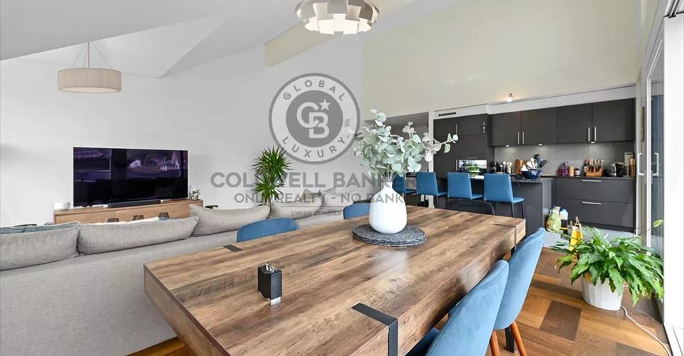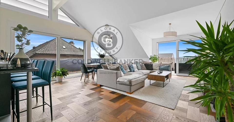 Situé au coeur du village de Saint-Légier, ce spacieux attique de 4.5 pièces bénéficie d’une terrasse de 44 m2 ainsi que d’une magnifique vue sur le lac et les montagnes. Cet appartement de 137 m2 pondérés profite de hauts plafonds ainsi que de grandes baies vitrées qui lui procurent beaucoup de luminosité. Toutes les pièces bénéficient de magnifiques finitions ainsi que de matériaux de haut standing. Il se trouve dans une résidence de prestige construite en 2020 et profite d’une situation rare dans un quartier calme à deux pas des écoles, commerces et transports publics. Disponible pour février 2026. DISTRIBUTION Hall d’entrée avec armories murales Salle de douches avec colonne de lavage/séchage 1 chambre à coucher 1 chambre à coucher Chambre parentale avec salle de bains et accès terrasse Cuisine avec îlot et accès terrasse Séjour/salle à manger avec accès terrasse Terrasse de 44 m2 ANNEXES Grande cave avec prise électrique Parking 2 places en sus à CHF 80’000.- Visite uniquement en présence et/ou avec l’accord préalable de Coldwell Banker Swiss Riviera. Aucun document ne peut être transmis à des tiers sans autorisation.