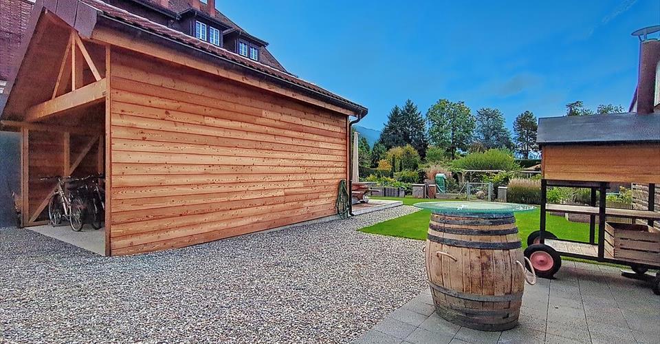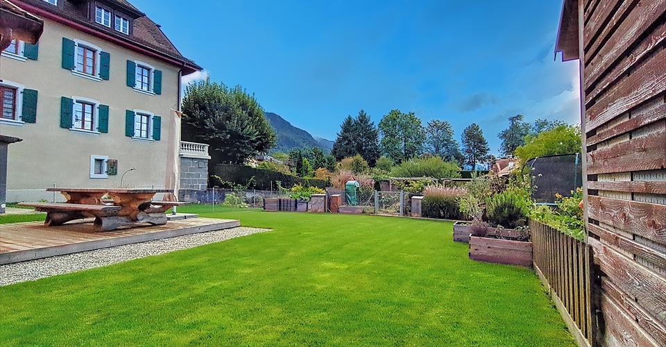 EXCLUSIF ! Charmant appartement de 4.5P d’env. 105 m2 avec loggia et joli jardin dans la résidence en plein coeur de Blonay. Cet appartement se situe dans la PPE “Cour de Bourg” et se compose de la manière suivante : Cuisine équipée ouverte sur le salon/salle à manger Un réduit Une buanderie avec WC visiteur Une chambre parentale avec un grand dressing et une salle de douche Une chambre donnant sur un patio intérieur Une chambre lumineuse Une salle de bain Une loggia Cet appartement est équipé d’une climatisation Une place de parc intérieure et une place de parc extérieure (en sus du prix de vente) Une cave privée Un local privé Une jardin commun à la Résidence, équipé pour profiter des extérieurs (table de pique-nique, terrasse, grill, WC, lavabo) Un abri vélo Cet appartement spacieux se situe au 2ème étage avec ascenseur, d’un bâtiment historique entièrement transformé en 2020 : la conservation des murs historiques contribue à une atmosphère chaleureuse et authentique de l’immeuble. La modernité de l’appartement et des parties communes et le choix écologique et économique du chauffage seront vous séduire. De plus avec cet appartement, vous bénéficiez du jardin commun de la résidence qui lui offre un local avec frigidaire, terrasse, table de pique-nique, grill, accès au WC et lavabo, ainsi qu’un abri vélo. Une cave, un local privé ainsi qu’une place de parc intérieure et une place de parc extérieure complètent ce bien. Prix de vente de l’appartement : CHF 1’090’000.-, inclus cave et local privé Prix de vente de la place de parc intérieure : CHF 40’000.- Prix de vente de la place extérieure : CHF 20’000.- Prix total : CHF 1’150’000.- Disponibilité : à convenir