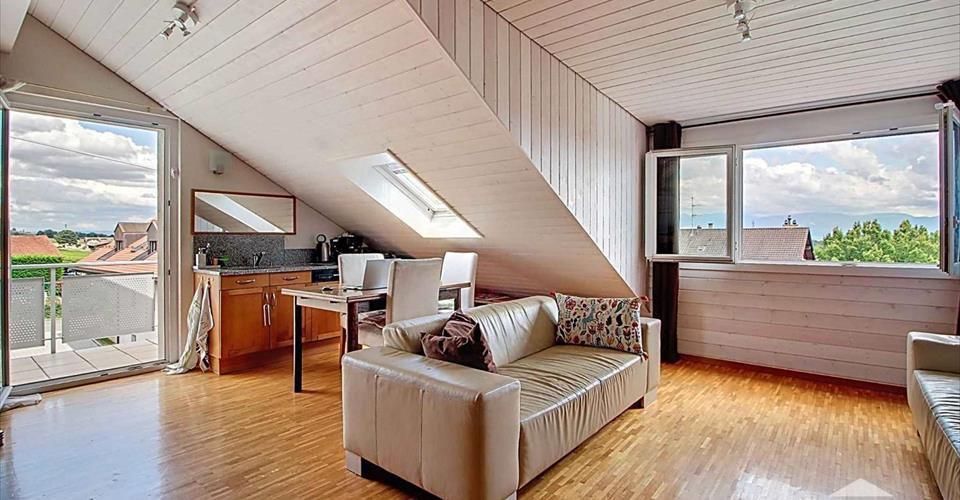 Bursins, commune à connotation viticole idéalement située au milieu du vignoble de La Côte Vaudoise, à proximité des villes de Rolle et de Nyon, néanmoins reliée par les cars Postaux. Cette charmante localité propose deux restaurants, une épicerie faisant office de bureau de poste, une boulangerie ainsi que divers commerces de services et artisans. Cet appartement en duplex et traversant se situe à proximité immédiate du centre du village, il offre une vue sur le Lac et les Alpes. Composé d’un grand séjour/salle à manger avec balcon, d’une cuisine ouverte, de trois chambres, 2 salles d’eau ainsi que d’une mezzanine, ce bien ne manquera pas de vous séduire. Il est complété par un jardin privatif, ainsi qu’un box et une place de parc extérieure à CHF 60’000.- en sus. Contactez-nous sans tarder pour une visite des lieux ! *** Etat du fonds de rénovation au 31.12 2024 : CHF 64’000.- Attribution mensuelle : CHF 111.- Frais d’exploitation : CHF 75.- Frais énergie mensuelle : CHF 300.- Pour un total mensuel de CHF 486.- *** Impôt foncier : 1‰