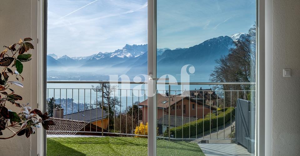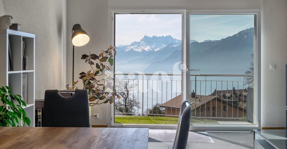 Ce magnifique appartement de 4,5 pièces, d’une surface habitable de 128 m², situé au dernier étage, offre un charme indéniable avec ses poutres apparentes, ses hauts plafonds et ses spacieuses pièces à vivre. Implantée dans une copropriété construite en 2011, la résidence se trouve sur une parcelle dominante, sur les hauteurs de la commune de Chardonne, au Mont-Pélerin, bénéficiant d’une vue à couper le souffle sur le lac et les montagnes. Orienté plein sud, l’appartement jouit d’une luminosité optimale grâce à ses nombreuses ouvertures. Il dispose de deux grands balcons pour profiter pleinement de ce cadre de vie privilégié. Un garage box et une place de parc extérieure, en sus du prix de vente à CHF 70’000.-, complètent ce bien d’exception. *Vente autorisée aux étrangers et Suisses non-résidents