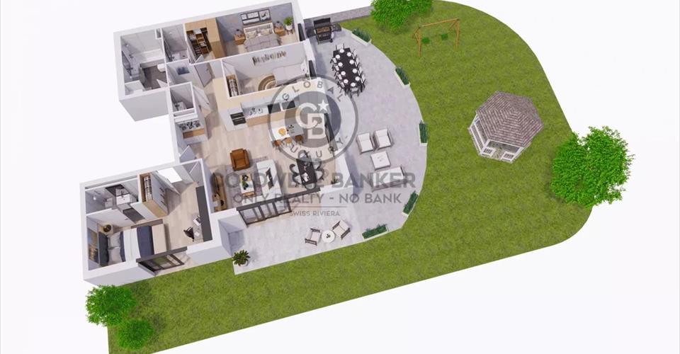 Appartement de standing avec situation exclusive ! Situé au c?ur du village de Chardonne, ce magnifique appartement de 148 m2 bénéficiera d’une belle vue sur le lac et les montagnes ainsi que d’une grande terrasse et d’un jardin privatif. Ce spacieux et lumineux 4.5 pièces aura l’avantage d’avoir une grande chambre coucher/studio semi-indépendante avec salle de douche attenante, accès terrasse et entrée séparée. La Résidence Vaudaire profitera d’une situation d’exception à l’abris de toute nuisance, à proximité immédiate des commerces et à 5 minutes des transports publics. Toutes les finitions sont à choix. Disponible en automne 2026. www.residence-vaudaire.ch DISTRIBUTION Hall d’entrée avec armoires muralesWC visiteurs1 chambre à coucher avec accès terrasse1 suite parentale avec salle de douche, dressing et accès terrasseSalle de bains avec baignoire, douche et colonne de lavage/séchage1 chambre/studio avec salle de douche, accès terrasse et entrée séparéeGrande cuisine ouverte avec îlot centralSpacieux séjour avec accès terrasseTerrasse de 75 m2Jardin privatif de 100 m2ANNEXES 1 cave à vin1 cave2 places de parc intérieures à CHF 45’000.- /place en sus Visite uniquement en présence et/ou avec l’accord préalable de Transaxia Immobilier SA. Aucun document ne peut être transmis à des tiers sans autorisation.