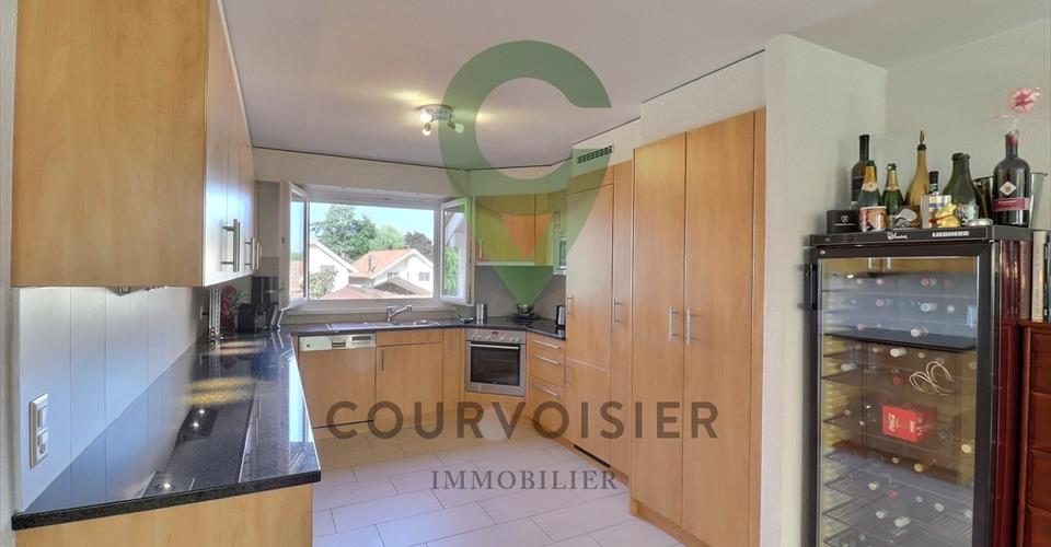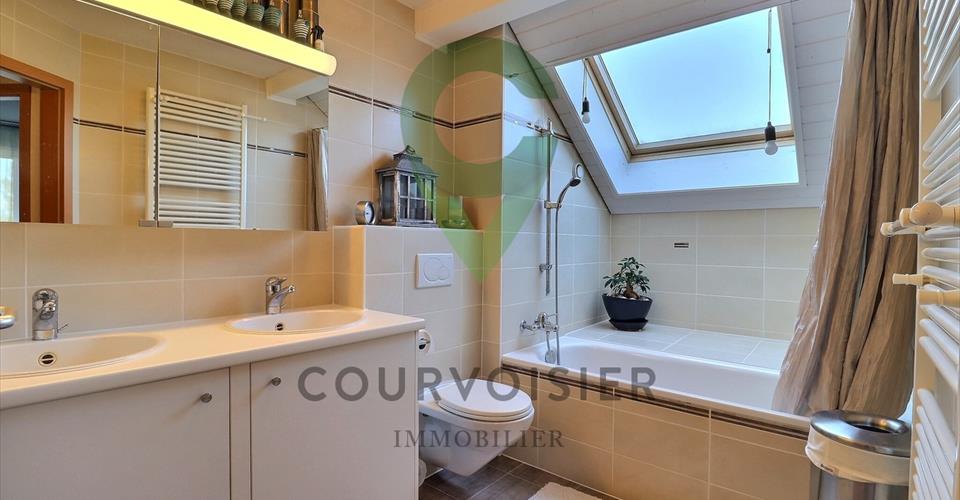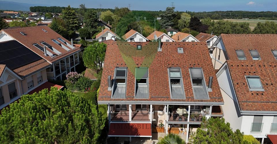 Situé dans une petite copropriété paisible au cœur du charmant village de Chavannes-des-Bois, ce remarquable duplex de 4.5 pièces séduit par ses volumes généreux, sa luminosité et son atmosphère chaleureuse. Sa situation privilégiée, à seulement 15 minutes des villes de Genève et de Nyon, et à 50 m d’un arrêt de bus menant à la gare CFF de Versoix, offre un équilibre parfait entre tranquillité villageoise et accessibilité urbaine. Le village est desservi par le bus TPN (transports publics Nyon) et TPGA (transports publics Genevois) jusqu’à l’aéroport de Genève. Ce qui rend aussi l’accès aux organisations internationales facile. Avec 122 m² de surface utiles, complétés par un galetas aménagé de 25 m², ce bien conjugue élégance et fonctionnalité dans un cadre préservé. La vue entièrement dégagée sur un terrain arborisé appartenant à la copropriété garantit une quiétude durable, sans risque de construction future. Une grande cave de 18 m² vient parfaire l’ensemble. 1er niveau – espace jour Hall d’entrée avec armoire intégrée Salle d’eau avec douche et WC Séjour lumineux agrémenté d’un poêle suédois Cuisine ouverte, entièrement équipée, avec colonne de lavage intégrée Accès direct à un balcon de 12 m² doté d’un barbecue et d’une cheminée extérieure, véritable prolongement de l’espace de vie 2ème niveau – espace nuit Hall de distribution Spacieuse salle de bain avec baignoire et WC, pouvant être repensée pour créer une salle d’eau privative à la chambre principale Trois chambres baignées de lumière naturelle 3ème niveau – galetas aménagé Espace supplémentaire de 25 m² au sol, bénéficiant de deux Velux, idéal pour bureau, salle de jeux ou chambre d’appoint Stationnement 2 places extérieures (dont 1 couverte) non-incluses, obligatoires – CHF 40’000.- Options : 2 places extérieures couvertes – CHF 40’000.–. Proche des écoles, crèches, commerces et axes autoroutiers, ce duplex rare sur le marché allie charme, confort et praticité. Un lieu de vie prêt à accueillir votre famille dans un environnement verdoyant et privilégié. Contactez-nous dès aujourd’hui pour organiser une visite et laisser opérer le coup de cœur.