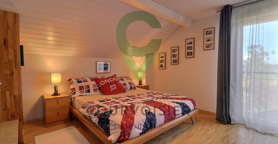 Situé dans une petite copropriété paisible au cœur du charmant village de Chavannes-des-Bois, ce remarquable duplex de 4.5 pièces séduit par ses volumes généreux, sa luminosité et son atmosphère chaleureuse. Sa situation privilégiée, à seulement 15 minutes des villes de Genève et de Nyon, et à 50 m d’un arrêt de bus menant à la gare CFF de Versoix, offre un équilibre parfait entre tranquillité villageoise et accessibilité urbaine. Le village est desservi par le bus TPN (transports publics Nyon) et TPG (transports publics Genevois) jusqu’à l’aéroport de Genève. Ce qui rend aussi l’accès aux organisations internationales facile. Avec 122 m² de surface utiles, complétés par un galetas aménagé de 25 m², ce bien conjugue élégance et fonctionnalité dans un cadre préservé. La vue entièrement dégagée sur un terrain arborisé appartenant à la copropriété garantit une quiétude durable, sans risque de construction future. Une grande cave de 18 m² vient parfaire l’ensemble. 1er niveau – espace jour Hall d’entrée avec armoire intégrée Salle d’eau avec douche et WC Séjour lumineux agrémenté d’un poêle suédois Cuisine ouverte, entièrement équipée, avec colonne de lavage intégrée Accès direct à un balcon de 12 m² doté d’un barbecue et d’une cheminée extérieure, véritable prolongement de l’espace de vie 2ème niveau – espace nuit Hall de distribution Spacieuse salle de bain avec baignoire et WC, pouvant être repensée pour créer une salle d’eau privative à la chambre principale Trois chambres baignées de lumière naturelle 3ème niveau – galetas aménagé Espace supplémentaire de 25 m² au sol, bénéficiant de deux Velux, idéal pour bureau, salle de jeux ou chambre d’appoint Stationnement 2 places extérieures (dont 1 couverte) non-incluses, obligatoires – CHF 40’000.- Options : 2 places extérieures couvertes – CHF 40’000.–. Proche des écoles, crèches, commerces et axes autoroutiers, ce duplex rare sur le marché allie charme, confort et praticité. Un lieu de vie prêt à accueillir votre famille dans un environnement verdoyant et privilégié. Contactez-nous dès aujourd’hui pour organiser une visite et laisser opérer le coup de cœur.