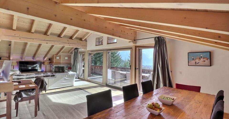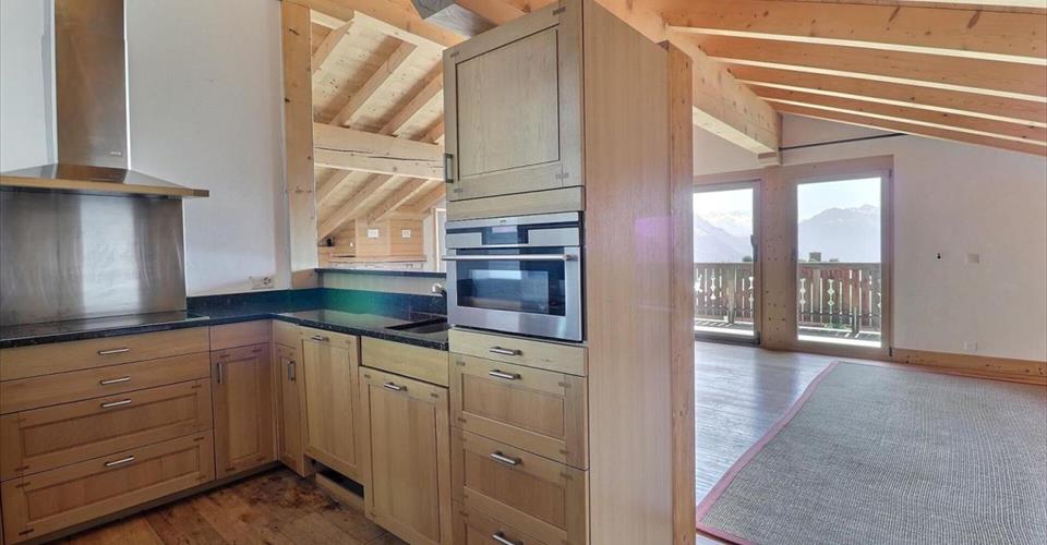 Duplex de standing, au sein du Domaine de la Résidence, à côté de la piste de ski, il bénéficie d’un environnement calme et d’une vue panoramiques sur les Alpes tout en étant à quelques minutes en voiture du centre de Villars et des télécabines. L’ascenseur arrive directement dans l’appartement. DESCRIPTION : APPARTEMENT DUPLEX 4.5 PIÈCES Combles Hall d’entrée avec placards Séjour avec cheminée et 2 portes-fenêtres menant au large balcon Sud Cuisine ouverte sur le séjour entièrement équipée Grande chambre double avec placards, fenêtre Est, en suite avec baignoire, douche et WC séparés et fenêtre Nord WC séparés Buanderie 1er étage Hall avec placards Chambre double avec placard, en suite avec salle de bain avec douche, et porte-fenêtre menant au petit balcon Est Chambre double avec placard, en suite avec salle de bain avec douche, et porte-fenêtre menant au petit balcon Est Ce bien comporte 2 places de parc dans le garage sécurisé. Ce document n’a aucune valeur contractuelle, les informations présentées ne sont données qu’à titre indicatif et ne font pas office de contrat