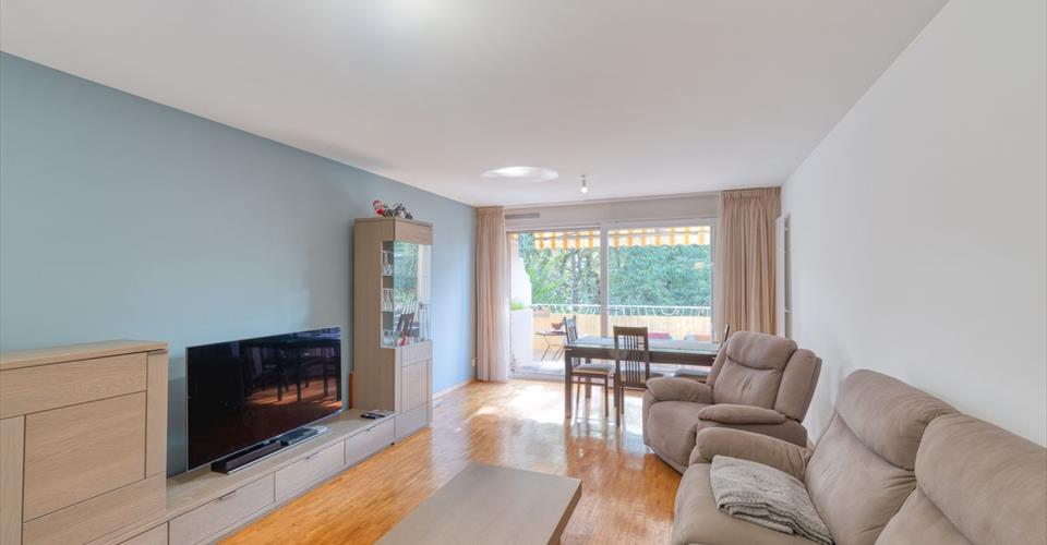 En exclusivité ! Idéalement situé à Confignon, à quelques minutes à pied du cycle d’orientation du Vuillonnex et des commodités, ce magnifique 4.5 pièces, en bon état d’entretien, offre un cadre de vie paisible au sein d’une copropriété bien administrée. Situé au 1er étage, l’appartement offre une agréable surface de 102 m², complétée par un balcon de 7 m² orienté Ouest, idéal pour profiter du soleil l’après-midi et en soirée. Hall d’entrée accueillant Séjour lumineux avec accès au balcon Cuisine fermée entièrement équipée Salle de bains avec espace buanderie intégré Salle de douche avec WC Réduit de rangement 2 chambres confortables d’env. 14.6 m² et 13.9 m² L’appartement est chauffé par radiateurs et les charges PPE s’élèvent à env. CHF 550.-/mois. Un espace tonnelle extérieur est à disposition exclusive des copropriétaires, idéal pour organiser différents événements. Un box semi-fermé (inclus dans le prix de vente) ainsi qu’une cave complètent ce bien. Pour toute information complémentaire ou pour organiser une visite, merci de contacter William Siegfried 7j/7, ou de répondre directement à l’annonce.