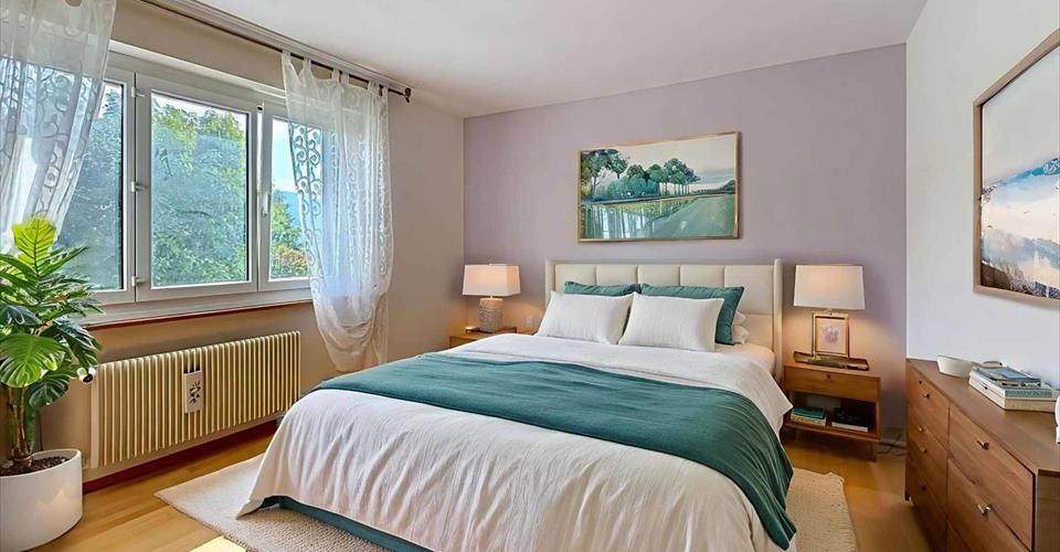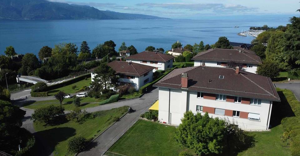 Ce bel appartement de 120 m² pondérés dont 114 m² habitables occupe le 1er étage d’une petite copropriété de seulement 5 lots, offrant ainsi un environnement résidentiel intime et soigné. Le balcon de 12 m² permet de profiter pleinement de l’extérieur. Baigné de lumière grâce à son exposition plein Sud, le logement bénéficie d’une vue imprenable sur le lac Léman et les majestueuses Alpes en toile de fond. La disposition des pièces, bien pensée, offre des espaces de vie agréables et fonctionnels. À la fois calme et idéalement situé, l’appartement se trouve à proximité immédiate de toutes les commodités : transports publics, commerces, écoles et axes routiers. Un emplacement privilégié pour concilier qualité de vie et praticité au quotidien. Une cave ainsi que deux garages box viennent compléter ce bien. Distribution intérieure : • Un séjour avec cheminée et accès au balcon ; • Une cuisine fermée ; • Trois chambres ; • Un WC visiteurs ; • Une salle de douche ; • Une salle de bains. Prix de l’appartement : CHF 1’150’000.– Prix total des deux garages box : CHF 80’000.– Prix total de vente : CHF 1’230’000.–