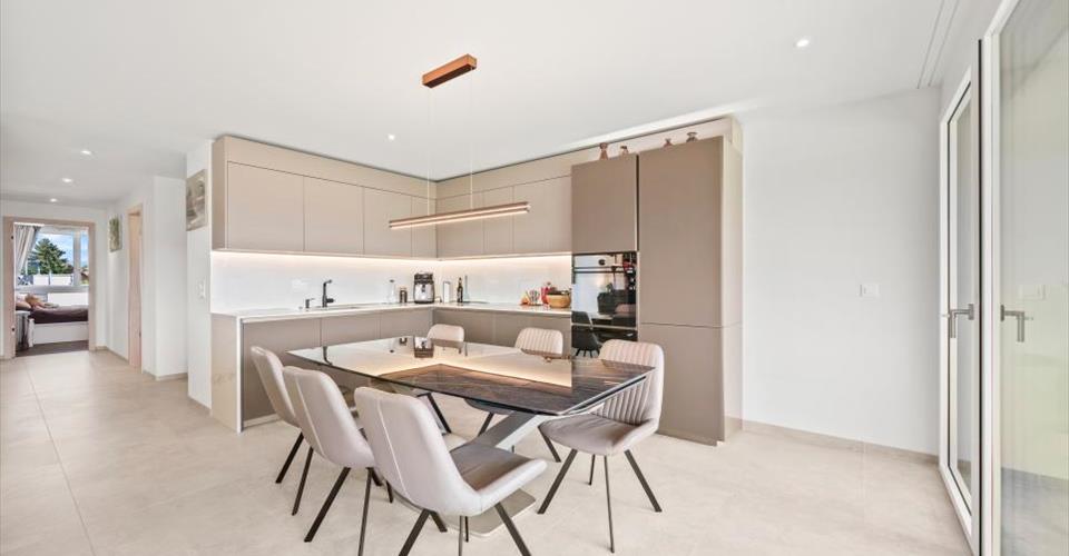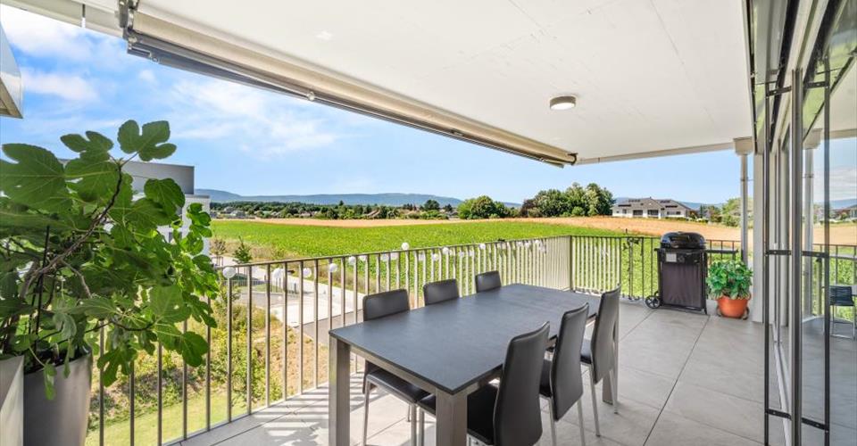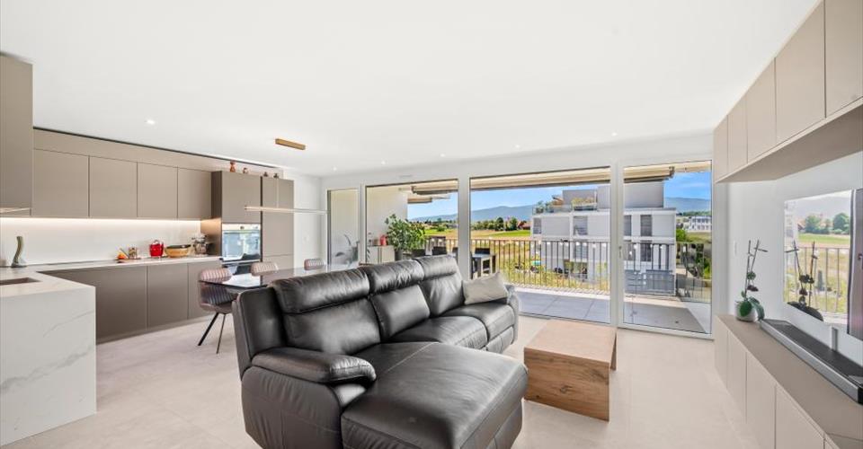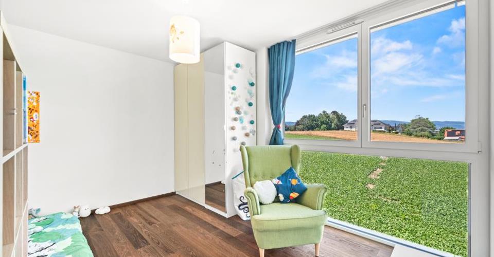 À VENDRE – Superbe appartement de standing avec finitions haut de gamme – 3ème étage d’un immeuble en PPE (Disponibilité selon accord) Idéalement situé à proximité immédiate des commerces, des écoles et des transports publics, ce splendide appartement saura séduire les amateurs de confort moderne, avec domotique et de design soigné. Un balcon avec vue dégagée sur la campagne et les montagnes du Jura. Descriptif du bien : Ce bien rare offre un cadre de vie élégant et fonctionnel, pensé dans les moindres détails : Spacieux séjour lumineux avec une grande baie vitrée donnant accès au balcon de 18 m2 Carrelage au sol en grès céram dans tout l’appartement. Cuisine ouverte luxueuse avec finitions en verre dépoli, plan de travail en céramique et évier intégré Électroménager de prestige : four combiné, tiroir chauffant, vitrocéramique à induction, réfrigérateur-congélateur XXL, lave-vaisselle et hotte de ventilation tout intégrés. Éclairage indirect et spots encastrés dans le plafond de la partie jour pour une ambiance raffinée Portes de communication affleurées pour une esthétique épurée Stores électriques, fenêtres triple vitrage, galeries à rideau intégrées au plafond Balcon avec store toile électrique, idéal pour profiter des beaux jours en toute intimité 3 spacieuses chambres à coucher, dont une parentale avec dressing intégré sur mesures et 1 salle de douche privative Parquet massif dans les 3 chambres. 1 salle de bains avec baignoire, colonne de lavage (inclue) 1 économat complète ce bien d’exception. Compléments : Immeuble PPE de 18 appartements avec ascenseur Chauffage par le sol et alimenté par PCA avec sonde géothermique “chauffage Natural cooling” pour des étés frais. Panneaux solaires en toiture. Ventilation simple flux. 1 cave privative + 1 local bricolage de 15 m2 + 1 buanderie commune. 2 places de parking dans le sous-sol (CHF. 35’000.- en sus du prix de vente). 1 place de parc moto à l’extérieur (CHF. 5’000.- en sus du prix de vente). 1 local bricolage (CHF. 30’000.- en sus du prix de vente). Environnement calme et verdoyant à quelques minutes du centre Ce bien d’exception ne nécessite aucune rénovation et conviendra parfaitement à des personnes exigeantes à la recherche d’un cadre de vie moderne et raffiné. Contactez nous dès aujourd’hui pour organiser une visite et découvrir tout le potentiel de ce bien unique