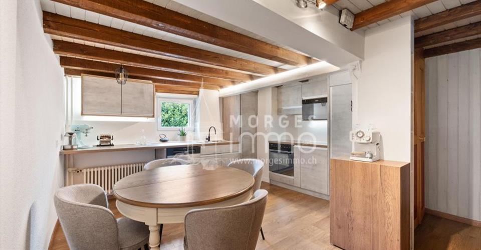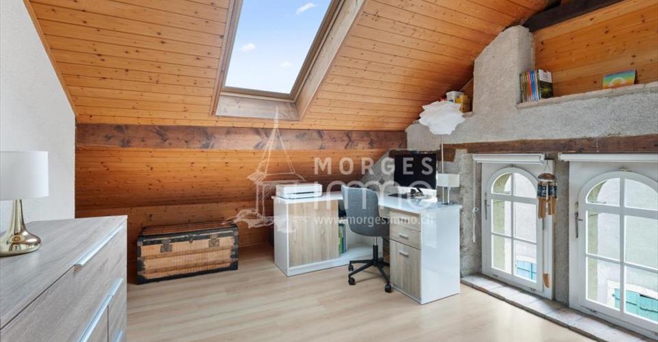 Bel appartement de charme en duplex avec jardin privatif – 4.5 pièces d’environ 137 m² habitable. Situé au coeur de la vieille ville de Cossonay, dans une PPE de seulement trois logements, cet appartement spacieux et plein de cachet offre un cadre de vie rare et privilégié. Réparti sur deux niveaux, il séduit par son authenticité et ses espaces généreux. L’appartement est disposé de la manière suivante : Rez-de-chaussée – Hall d’entrée 1er étage (accès par escalier) – Cuisine centrale habitable – Séjour avec poêle à bois – Chambre avec salle d’eau, douche, wc et lavabo 2ème étage – Hall de distribution de belle taille avec coin séjour – Chambre avec armoires de rangements sur mesure – Chambre lumineuse attenante à la salle d’eau – Salle d’eau avec baignoire, wc et lavabo Accès au jardin privatif d’environ 82 m² par l’extérieur, une cave privative et une buanderie commune complètent ce lot. Cet appartement combine le charme de l’ancien avec de beaux volumes, le tout dans un environnement calme et recherché. Une opportunité rare en plein centre historique !