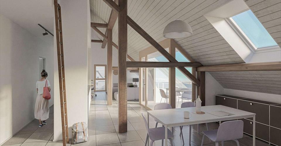 4,5 pièces dans les combles Située à l’entrée du charmant village de Cronay, ce projet de 3 appartements en PPE profite d’un environnement calme et verdoyant, avec une vue étendue sur les Préalpes fribourgeoises et vaudoises. Cette ancienne maison villageoise sera entièrement rénovée avec soin pour créer des logements spacieux et lumineux. L’architecture extérieure sera préservée et mise en valeur par des matériaux nobles, fidèles au caractère de la construction d’origine. LOT 3 : Le dernier lot, réparti entre le premier étage et les combles, proposera un appartement de 4.5 pièces d’environ 116m². Le premier étage accueillera un WC visiteur. Sous les combles, l’appartement profitera de superbes poutres apparentes. Un grand hall desservira trois chambres à coucher ainsi qu’une salle de bain. Une loggia, un spacieux galetas aménageable et une cave viendront compléter cet ensemble. Un espace de potager privé sera également prévu pour cet appartement. Chaque lot disposera de 3 places de parc extérieures en sus du prix de vente (CHF 10’000.-/unité) et offrira à ses futurs occupants la possibilité de personnaliser les finitions selon leurs envies. Les futurs propriétaires auront la possibilité de personnaliser les finitions selon leurs envies, tandis que les matériaux utilisés pour les aménagements extérieurs assureront une parfaite intégration dans le cadre naturel environnant. Livraison : été 2026 Situation Cronay est une commune suisse du canton de Vaud, située dans le district du Jura-Nord vaudois. Accessibilité Cronay se situe à 6 km à l’est d’Yverdon, entouré des communes d’Yvonand, Donneloye, Orzens, Ursins, Pomy et Cuarny. Transports publics : Deux lignes régulières de CarPostal desservent Cronay, avec des arrêts à Cronay Village et Cronay Moulin du Pont. 2 départs/heure pour Moudon 2 départs/heure pour Yverdon-les-Bains (env. 19 min) Le bus est le principal moyen de transport public reliant la commune. En voiture : Yverdon-les-Bains : 10 min Plage d’Yvonand : 15 min Lausanne : moins de 40 min Autoroute A1 : facilement accessible Fribourg et Berne : moins d’1 heure Écoles et garderie Cronay fait partie de l’établissement primaire et secondaire d’Yvonand et environs. Le collège de Cronay accueille les classes de 3P à 6P. Les autres niveaux sont suivis à Yvonand, avec un service de bus scolaire. L’enseignement est organisé via l’Association scolaire intercommunale d’Yvonand et environs (ASIYE), qui regroupe 10 communes. La petite enfance est prise en charge par le réseau Yvonand-Menthue (RYMAJE), également partagé entre 10 communes Commodités À Cronay, des produits frais de la région sont souvent disponibles en libre-service. Pour un plus large choix, Yverdon-les-Bains (à moins de 20 minutes) offre : Centres commerciaux Restaurants, cafés, tea-rooms, bars Boulangeries, épiceries, petits commerces Médecins, pharmacies Bureau de poste Banques, fiduciaires, notaires Coiffeurs, garages Installations sportives et associations Loisirs La région propose de nombreuses activités de plein air et des événements via les sociétés locales. À moins de 15 minutes, la plage d’Yvonand permet de profiter d’activités variées pour toute la famille. Niché derrière ses vergers et à l’écart des grands axes, le village bénéficie d’un cadre paisible et verdoyant, bordé de deux vallons : La Menthue, formant des falaises vers Yvonand. Le ruisseau de Cuarny, son affluent À 625 m d’altitude, Cronay s’étend sur 643 hectares, sous forme d’une colline offrant de belles vues sur le Jura et les Alpes. Le sentier de la Menthue est idéal pour les balades. Sociétés locales : Société de jeunesse, Société de gymnastique féminine, Société de pétanque, Société Crocanti, Société de tir du Montélaz et Association des paysannes vaudoises Cronay en bref District : Jura-Nord vaudois Sobriquet : Les Corbeaux Population : 410 habitants (au 31.12.2022) Altitude : 625 m Superficie : 6,43 km² Taux d’imposition : 77 points Site web : http://www.cronay.ch Données techniques Technique : Chauffage : Pompe à chaleur Panneaux solaire : Oui Vitrage : Triple Budgets : Cuisines : CHF 13’681.78 HT (selon offre) Carrelage : CHF 37.-/m2 (fourniture) Parquet : CHF 70.-/m2 (fourniture) Sanitaires : CHF 7’345.31 HT (sleon offre) Détail du prix de vente : Appartement : CHF 815’000.- Places de parc : CHF 30’000.- Total : CHF 845’000.-