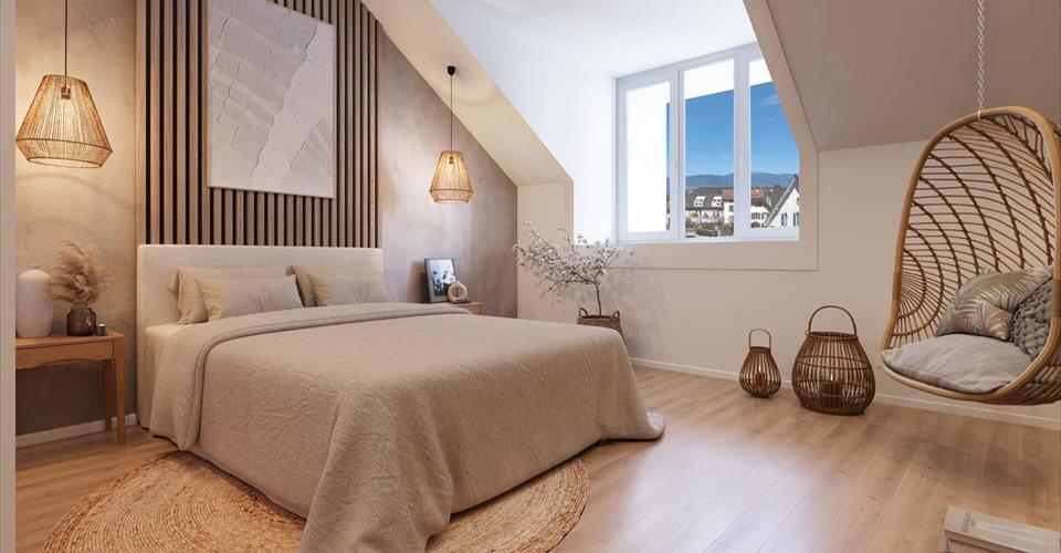 Lieu de vie contemporain, en plein coeur d’Échallens. Notre promotion de 7 appartements “À deux pas” (www.a2pas.ch) s’épanouit discrètement, comme une respiration douce au coeur du bourg. Un projet à taille humaine, pensé pour celles et ceux qui veulent vivre dans un lieu pratique, lumineux et bien ancré dans son époque. Ici, la voiture devient optionnelle : tout se fait à pied, et la gare LEB n’est qu’à deux pas. Le projet assume pleinement cette approche en offrant, avec chaque lot, un vélo électrique de qualité pour allier liberté, confort et mobilité douce. Des places pour vélos sont à disposition devant la résidence. Des places motos sont vendues en sus pour répondre aux besoins spécifiques. Les logements offrent de belles surfaces, une grande clarté et pour la plupart, une orientation traversante avec des jardins et des extérieurs exposés plein sud. L’ensemble conjugue efficacité énergétique (géothermie, panneaux solaires, isolation renforcée), accessibilité (ascenseur, normes handicapées), et calme grâce à une conception soignée jusque dans les détails. Les finitions sont personnalisables, avec une attention particulière portée à l’élégance et à la qualité. Proposé à un prix très intéressant, ce projet allie charme, modernité et liberté de mouvement, pour une vie plus douce, et bien connectée. Cachet et confort. Ce magnifique appartement en duplex de 100.17 m2 (lot n°7), traversant, promet beaucoup de cachet, une luminosité optimale et un agencement ultra pratique. Il se décompose comme suit : Étage inférieur : Hall d’entrée de 9.4 m² Salle de bain de 4.5 m2 avec baignoire, WC, lavabo et colonne lavante/séchante Une grande chambre de 17.7 m2 Cuisine d’angle de 4.6 m², ouverte sur le séjour/salle à manger de 26.7 m2 Étage supérieur : 2ème chambre spacieuse de 14.3 m2 3ème chambre spacieuse de 13.3 m3 Salle d’eau avec lavabo, WC et douche de 3.3 m2 Autres : Espace privatif et exclusif jardin/terrasse, arborisé de 18.21 m2 Cave privative Description technique de l’ouvrage Exigences acoustiques accrues Structure en béton armé et maçonnerie Charpente en bois Volets sur les fenêtres de façade Stores à lamelles Pompe à chaleur géothermique avec sonde Chauffage au sol Panneaux solaires photovoltaïques Ascenseur Interphone Compteurs individuels Sols en parquet (hors zones humides) Cave privative pour chaque lot Fibre optique Supports à vélos Places pour motos