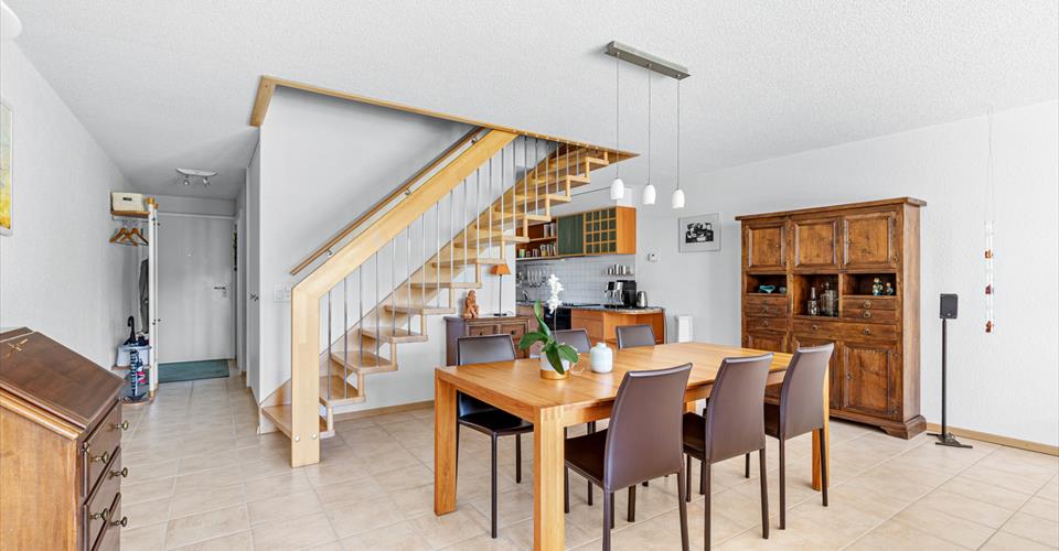 Situé au cœur de la charmante commune d’Echallens, entre Lausanne et Yverdon, ce magnifique duplex profite d’un emplacement idéal. Vous vivrez dans un cadre agréable et convivial, à deux pas de toutes les commodités (écoles, commerces, restaurants, bus, LEB, etc.), tout en bénéficiant d’une excellente accessibilité. Lausanne est atteignable en seulement 30 minutes et Yverdon en 20 minutes. Construit en 2001, ce bien a été entretenu avec soin et régulièrement rénové. Vous apprécierez la qualité des matériaux ainsi que le confort moderne, notamment grâce à une chaudière remplacée récemment. Il se dispose comme suit : Rez-de-chaussée : Hall d’entrée WC visiteurs avec colonne de lavage Cuisine ouverte, entièrement équipée Spacieux séjour avec possibilité d’installer un poêle suédois Accès direct aux terrasses et au beau jardin Etage : Hall de distribution 3 belles chambres à coucher Salle de bain, douche séparée et WC Annexes : Une très grande cave Un local à vélos Une place de jeux pour les enfants Un garage-box fermé (CHF 30’000.- en sus) ainsi qu’une place de parc extérieure (CHF 20’000.- en sus) complètent agréablement ce bien. Rare sur le marché, cet appartement saura séduire les familles comme les couples à la recherche d’un cadre de vie chaleureux et pratique. Une visite s’impose !