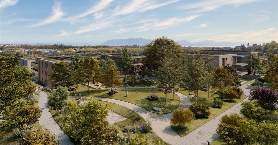 Bienvenue au Grand Pré, une résidence où le confort et l’écologie se marient parfaitement pour offrir une expérience de vie unique. Plongez au cœur de la nature préservée au Grand Pré, où biodiversité et raffinement regnent en maîtres. Ce vaste parc offre un biotope florissant, avec ses prairies et gazons parsemés de fleurs, ses majestueux arbres et ses haies vivantes. Les toitures végétalisées ajoutent une touche écologique à cet écrin luxuriant. Les larges allées piétonnes invitent à la balade, agrémentées de bancs et d’espaces verts propices à la détente et aux rencontres. Que ce soit pour une promenade paisible ou un moment de convivialité entre amis, le Grand Pré offre un cadre idyllique où la nature retrouvée inspire calme et sérénité.