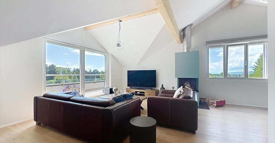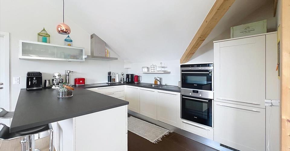 Glauser Immobilier SA vous propose : Un superbe appartement de 4,5 pièces en attique, doté de très agréables volumes, une grande pièce à vivre, trois grandes chambres, avec dressing sur mesure, une salle de douche et une salle de bain, une terrasse et un balcon, cet appartement a aussi accès à un parc arborisé commun à la PPE doté de divers jeux, table à manger. Dans un quartier à la quiétude absolue, cet appartement saura vous charmer par ses belles hauteurs sous plafond, sa luminosité hors norme et ses matériaux de qualité. Un garage box double compète ce bien au prix de CHF 80’000.– A visiter sans tarder. www.glauserimmo.ch