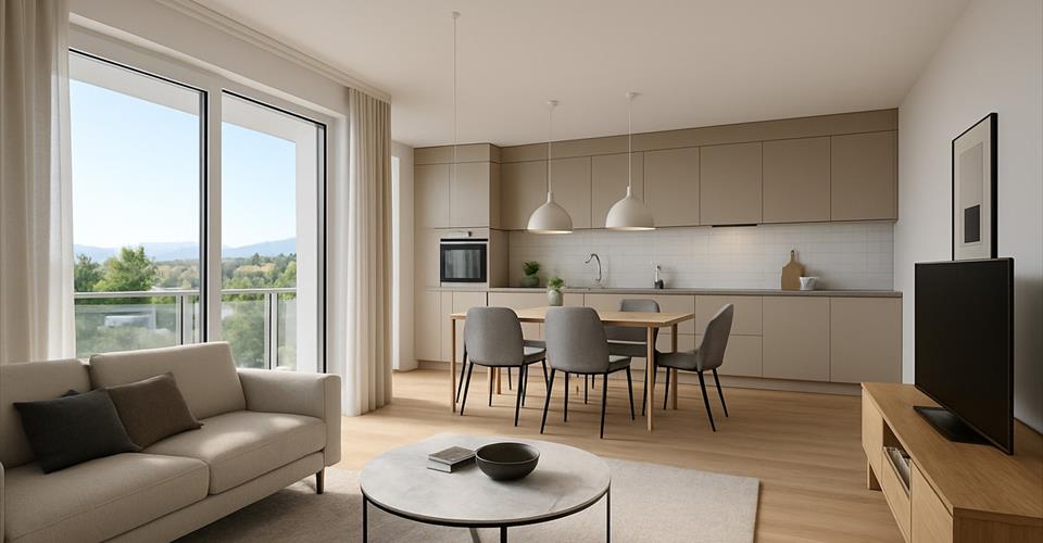 Offrez-vous ce superbe appartement de 113 m2 PPE, avec 4,5 pièces spacieuses, au 2ème étage d’un petit immeuble en PPE de 9 logements MINERGIE, répondant aux exigences énergétiques et de construction en vigueur en 2025 : 3 grandes chambres 1 salle de bains avec baignoire, WC et lavabo 1 salle de bains supplémentaire avec douche, WC et lavabo Salle à manger et cuisine entièrement équipée Cave privative de 5 m² complète ce bien 2 places de parc en supplément du prix affiché : 1 place de parking souterraine dans l’immeuble (CHF 35’000.– en sus) 1 place de parking extérieure (CHF 15’000.– en sus) Il est également particulièrement adapté comme bien de rendement pour les investisseurs. Nous nous tenons à votre disposition pour vous apporter toute information complémentaire. N’hésitez pas à nous contacter.