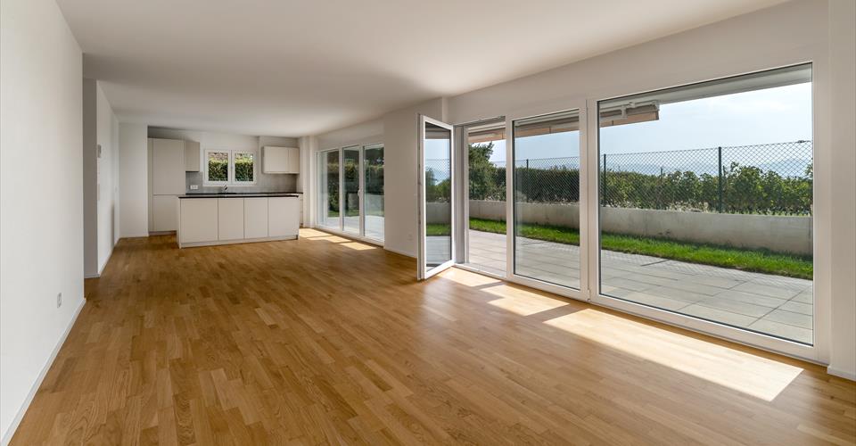 Superbe appartement neuf avec terrasse et jardin privatif dans le charmant village d’Etoy (Vaud) avec vue magnifique sur le lac et les Alpes. Composé de 5 pièces, cet appartement est idéalement situé au cœur des vignes, dans un environnement paisible à proximité de toutes les commodités: écoles, transports et commerces. Lumineux, il offre des finitions de qualité et un agencement optimisé pour une surface privative de 145 m² ouvrant sur son beau jardin plat et clôturé de 150 m² avec une terrasse ensoleillée de 50 m². Deux places de stationnement et une cave au sous-sol de l’immeuble complètent ce bien rare. Laissez-vous séduire et contactez-nous pour plus d’informations.