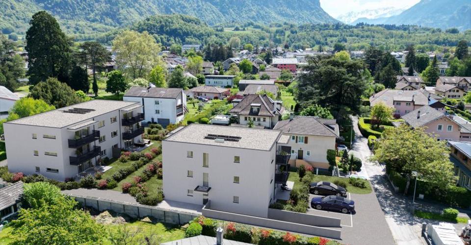 Au coeur de la ville de Bex “JOLI-CLOS” Immeuble A Au rez-de-jardin un appartement de 4,5 pces de 128.4 m2 avec une terrasse et un jardin. Séjour avec cuisine ouverte de 49,90 m2, trois chambres de 17,4m2 pour la plus grande la seconde de 12,10 m2 et la dernière de 10.4 m2. Avec deux salles de bains et un grand hall d’entrée. Les transports en commun, train ou bus, vous sont parfaitement accessibles. La gare se trouve à proximité, quant à l’entrée qui vous relie à l’autoroute, elle n’est qu’à quelques minutes. Situé au chemin de la Ruaz dans un quartier qui offre un environnement extrêmement favorable et tranquille. Avec une cave. Beaux espaces lumineux et ensoleillé Quartier familial et préservé de la circulation Aménagements extérieurs soigné Places de parcs intérieures : Chf 38’000.- Places de parcs extérieures : Chf 18’000.-