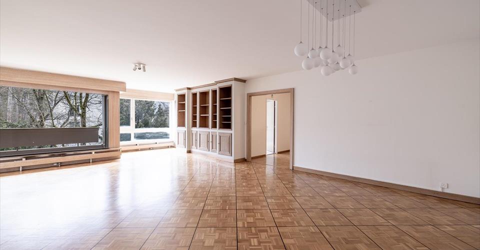 Notons que cet appartement est désormais libre de tout bail et tout occupant. Ce superbe appartement est situé dans le quartier très prisé de Florissant, dans une résidence de standing construite au milieu des années ’70 et bénéficie d’un environnement calme et verdoyant à proximité immédiate du magnifique parc Bertrand ainsi que des commodités de transports, des commerces, des écoles et du centre-ville de Genève. Situé au 4e étage, ce lumineux 4.5 pièces profite d’une agréable surface de 141.60 m2 PPE et de deux balcons de 9.80 m2 et 4.90 m2 idéalement orientés Sud-Est, profitant d’une belle vue sur la verdure environnante. Son espace de vie intérieur rénové il y a quelques années se compose de la manière suivante : Partie jour : – Vaste hall d’entrée avec placards intégrés et WC visiteurs – Grand séjour avec bibliothèque faite sur mesure et accès balcon – Salle à manger – Une cuisine fermée, aménagée et équipée (avec colonne buanderie) Partie nuit : – Couloir de distribution agrémenté de nombreux placards intégrés – Chambre à coucher avec armoires encastrées – Salle de bains complète – Spacieuse chambre à coucher principale avec salle de douche attenante et balcon privatif (cette chambre à coucher est à l’origine séparée en deux permettant d’accueillir la 3e chambre voir plan annexé) Un emplacement de parking et une cave complètent avantageusement ce bien à visiter sans tarder !