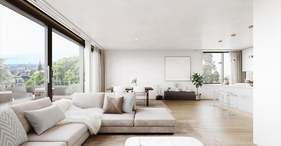 A vendre au cœur du quartier des Eaux-Vives : 9 appartements neufs de 4,5 pièces de 138m2 à 189m2, avec terrasse, loggia ou balcon. 1 attique exceptionnel de 295m2 avec terrasse de 180m2. Finitions extrêmement luxueuses et de très haut standing. Vue exceptionnelle et très dégagée tout autour du bâtiment. Localisation extraordinaire (AAA) à proximité immédiate de la nouvelle gare de Genève Eaux-Vives (Airport) et de ses commerces 7/7 (60m), des lignes de bus et de tramway 12 et 17 (70m) et de la nouvelle Comédie de Genève (100m). Sans aucune nuisance sonore, accès par une impasse très peu fréquentée. Grandes hauteurs sous plafond de 2,80m. Équipement domotique haut de gamme. Ouverture automatique de toutes les portes d’entrées grâce à la reconnaissance faciale. Construction Minergie, haute performance énergétique HPE. Bâtiment en phase d’achèvement, avec une livraison prévue pour septembre 2023. DISPONIBLES À LA VENTE : 9 appartements, 2 studios, un penthouse, 3 arcades/bureaux à vendre, au total ce sont 12 logements de haut standing qui se déclinent en 7 typologies différentes : 1 Appartement de 153 m2 avec terrasse de 65 m2 – à 3’190’600.– 2 Appartements de 161 m2 – à partir de 3’139’500.– 2 Appartements de 189 m2 avec loggia de 15 m2 – à partir de 3’144’000.– 4 Appartements de 153 m2 avec balcon de 23 m2 – à partir de 2’878’750.– 2 Studio de 43 m2 – à partir de 860’000.– 1 Attique de 295 m2 avec terrasse de 182 m2 – Prix sur demande 24 places de Parkings – à partir de 170’000.– 3 Arcades/Bureaux de 84m2, 114m2 et 557m2 – à partir de 1’344’000.– Au cœur du quartier des Eaux-vives, la LAC Tower est une résidence unique qui s’intègre harmonieusement à son contexte urbain. Par son architecture de qualité et sa situation géographique, elle offre un cadre de vie exclusif en plein Genève. LOCALISATION : La Lac Tower jouit d’une localisation vraiment extraordinaire et privilégiée au cœur du nouveau Projet O’VIVES, à proximité immédiate de tous les transports en commun, elle bénéficie d’une proximité immédiate avec la gare de Genève Eaux-Vives, des lignes de bus et de tramway 12 et 17 mais aussi de nombreux commerces et restaurants, dans le quartier très prisé des Eaux-Vives : Gare des Eaux-Vives & Commerces 7/7 – 60m – La nouvelle Gare des Eaux-Vives est à 60m ou 1 mn à pied. Cette gare dessert non seulement la Gare de Genève mais aussi l’aéroport. Elle comporte également de nombreux commerces ouverts 7 jours sur 7, tels que Migrolino, la Pharmacie Principal, la Fnac, Nicolas le spécialiste du vin, Barber chez Fadi, mais aussi des restaurants tels que la boulangerie Wolfisberg, Sushi Shop, le spécialiste du thé Tekoe, pour la liste complète des commerces et des horaires voire le site Gare de Genève Eaux-Vives : Magasins. Tram No. 12 – 70m – La ligne de Tram No 12 qui traverse tout Genève est à moins de 70 m ou 1mn à pied de la LAC Tower, et se trouve à côté de la nouvelle Gare des Eaux-Vives. Comédie de Genève – 200m – L’entrée de la nouvelle Comédie de Genève est à 200 m ou 2 mn à pied. Centre commercial des Eaux-Vives – 400m – Le Centre commercial des Eaux-Vives est à 400 m ou 4 mn à pied, et regroupe de nombreux commerces tels que la Coop, la Pharmacie Principal, Décathlon, Inter Discount, H&M, Fust, l’opticien Visilab, la banque UBS etc… Garderie d’enfant Petite Maison Frontenex – 10m – La Garderie d’enfant Petite Maison Frontenex est à 10 m, juste en face de l’entrée de la LAC Tower. École primaire du XXXI Décembre – 300m – L’École primaire du XXXI Décembre est à moins de 300 m ou 3 mn à pied. Lac – 800m – Proximité du lac qui se trouve à 800 m, c’est-à-dire à environ 9 mn à pied. Parc de la Clairière – 30m – Le Parc de la Clairière jouxte la LAC TOWER et son entrée se trouve à 30 m ou 1 mn à pied. Les accès autoroutiers sont à moins de 5 minutes. ENTRE CONFORT ET MODERNITÉ, UNE ARCHITECTURE CONTEMPORAINE RAFFINÉE : Le projet a été étudié avec soin afin d’allier confort et modernité. L’élégance de ses façades, la qualité des matériaux choisis et la mise en place des dernières avancées technologiques en matière de domotique dessinent une architecture contemporaine portant une attention particulière aux détails. Chaque appartement dispose de grandes pièces de jour et de cuisines Bulthaup ouvertes et équipées d’un îlot convivial. Ces généreux espaces disposent tous de larges ouvertures vitrées et lumineuses et d’une hauteur sous plafond de 2m80. Ce véritable havre de paix en pleine ville, vous offre en extérieur des loggias, balcons ou vaste terrasse en attique. Totalement vitré, l’attique présente une vue panoramique d’exception sur le lac Léman et son jet d’eau. Les sous-sols disposent de places de parc pour voitures et motos, de caves ainsi que d’espaces de rangements complémentaires. L’ensemble s’accompagne de trois arcades commerciales au rez-de-chaussée apportant attractivité et convivialité. DES LOGEMENTS QUI RESPECTENT L’ENVIRONNEMENT : Les appartements bénéficient du label Minergie, haute performance énergétique, grâce à une pompe à chaleur et à des panneaux photovoltaïques qui permettent des gains d’énergie et une réduction substantielle de la consommation. Le chauffage au sol est réglable individuellement dans chaque pièce et dispose également d’une fonction autorégulante. BÂTIMENT CONSTRUIT AVEC LES DERNIÈRES AVANCÉES TECHNOLOGIQUES EN MATIÈRE DE DOMOTIQUE MAIS AUSSI DE SÉCURITÉ : Porte d’entrée de l’immeuble automatisée avec reconnaissance faciale Equipés en domotique, tous les appartements permettent une gestion intelligente de votre consommation et vous accordent un système de sécurité inédit par reconnaissance faciale. IPad permettant la gestion de chaque appartement fo