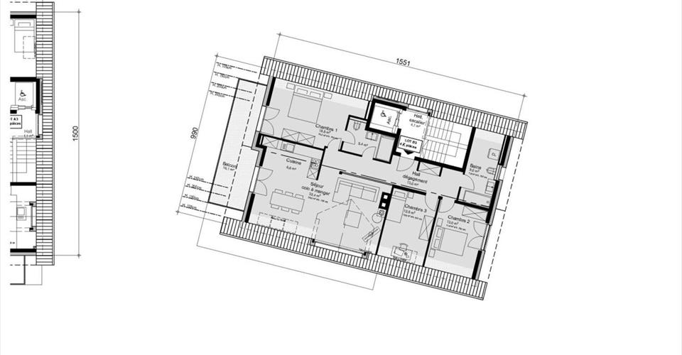 A 5 minutes d’Yverdon avec magnifique vue sur le lac, grand 3,5 pièces occupant tout l’étage des combles ETAGE Hall d’entrée avec armoire vestiaire Salle d’eau avec wc visiteurs Cuisine ouverte avec un espace repas avec accès au balcon Séjour Chambre parentale avec accès direct sur balcon, espace dressing et salle d’eau privative avec douche, lavabo et wc Salle de bains avec baignoire, lavabo, wc 2 belles chambres lumineuses TRES BELLES FINITIONS SOUS-SOL Cave de ~12.90 m2 1 place de parc intérieur ou extérieur en sus Sous réserve du permis de construire