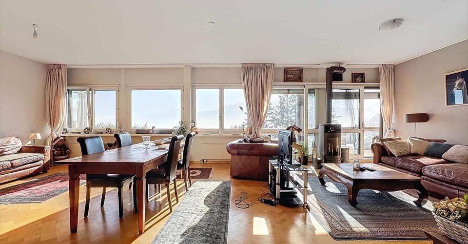 *** UNE EXCLUSIVITE BERNARD NICOD *** Découvrez ce magnifique appartement de 4,5 pièces, idéalement situé à Jongny, offrant une qualité de vie exceptionnelle. Ce bien de 160 m² construit en 2002, situé dans un immeuble de 1984, bénéficie d’une orientation plein sud avec une vue imprenable sur le lac et les montagnes. Caractéristiques de l’appartement : – Surface habitable : 160 m2 – Balcon : Profitez d’un espace de 26 m2 plein Sud – Jardin privé : Un espace de 14 m2 ombragé où il fait bon vivre – Cuisine et séjour : Cuisine entièrement équipée sur un vaste séjour situé plein Sud – Chambres : 3 grandes chambres – Salles d’eau : 1 disposant d’un douche/WC et 1 disposant d’une douche avec WC séparé – Buanderie: Privative – Espaces supplémentaires : Annexe/local indépendant de 18 m2 – Stationnement: Un grand garage/box avec porte automatique et une place de parc extérieure Cet appartement représente un cadre de vie exceptionnel pour une famille ou toute personne à la recherche d’un espace généreux et d’une vue unique dans un environnement calme et verdoyant. La proximité avec le lac et les montagnes, combinée au confort moderne de cet appartement, en fait un bien rare sur le marché. Prix de l’appartement : CHF 1’295’000.- 1 garage/box : CHF 40’000.- 1 pl. de parc extérieure : CHF 15’000.- Prix total : CHF 1’350’000.- Ne manquez pas cette occasion de vivre dans un lieu où la qualité de vie prend tout son sens.