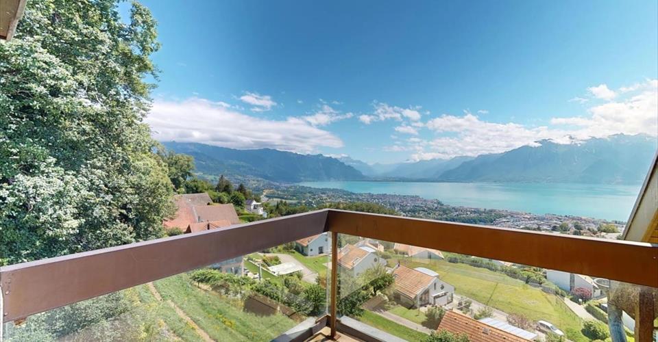 A JONGNY, superbe appartement 4,5 pièces avec vue imprenable sur le lac ! A DECOUVRIR ! A Jongny cet appartement 4.5 pièces de 1985 rénové avec des matériaux de finitions de qualité supérieure vous séduira par ses magnifiques espaces et sa luminosité. Granit au sol dans toutes les pièces au rez. Très grand espace séjour avec vue imprenable sur le lac. Belle terrasse de 150m2 afin de profiter des longues soirées d’été et balcons supplémentaires desservant chaque chambre à l’étage. Le concept architectural intelligent de cette PPE de 5 logements offre à chaque appartement une entrée indépendante au rez et non dans les étages permettant de bénéficier d’une espace similaire à une maison mitoyenne. La distribution de ses 245m2 nets habitables est la suivante : Rez-de-chaussée : Spacieux séjour salle à manger de 68m2 avec cheminée et grande cuisine ouverte. Accès à un balcon de 10m2 Local technique avec buanderie – chauffage au mazout de 2003 Local pour les provisions WC visiteurs Etage : 2 chambres à coucher de 17m2 avec accès à un balcon Grande chambre de 36 m² avec accès également à un balcon Salles de bains séparées par une porte coulissante vitrée avec baignoire, douche et WC séparés – rénovées en 2020 Cave En sus : Garage box : Fr. 40’000.00 Place de parc extérieure : Fr. 20’000.00 Fr. 1’800’000.00