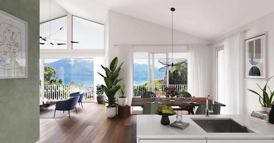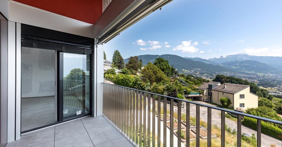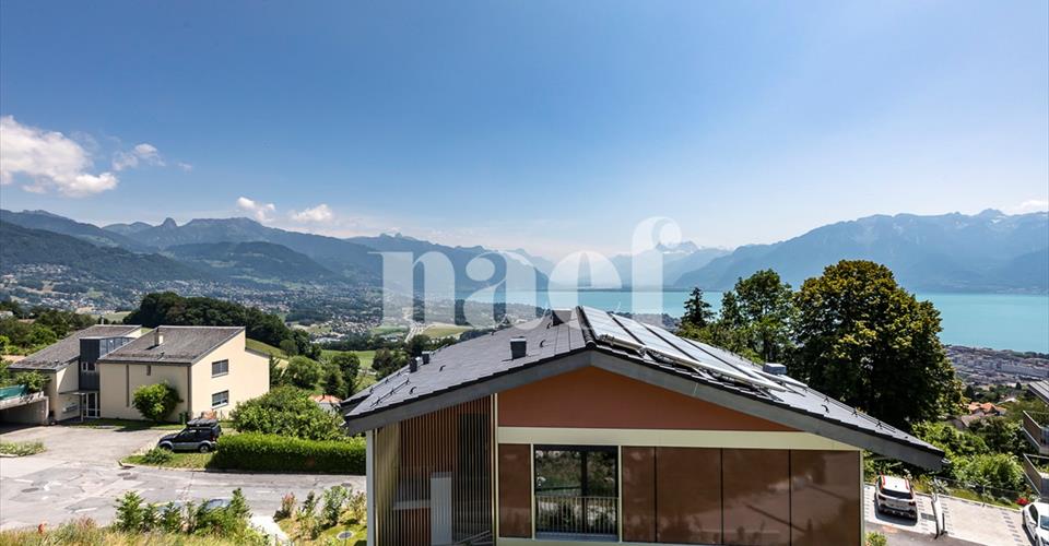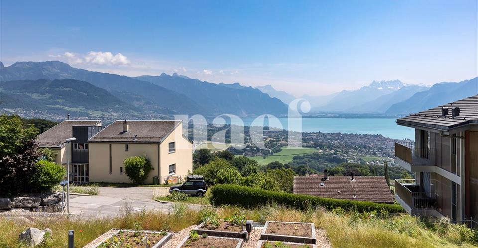 Dernière opportunité ! Superbe attique de 4.5 pièces dans une résidence éco-énergétique à Jongny. Environ 111 m² habitables, une mezzanine de 28 m², deux balcons de 17 et 5 m², soit surface de vente pondérée de 122 m2. Vue spectaculaire sur le lac et les montagnes. Exposition plein sud, grande luminosité. Finitions au gré du preneur. Deux places de parc intérieures (CHF 40’000.-/place) et cave en sus. Situé à moins de 10 min de Vevey, dans un environnement calme et verdoyant. Projet label Minergie, avec géothermie, panneaux solaires, façades actives, potagers partagés et architecture durable. Plus d’infos : www.les-v-terres.ch