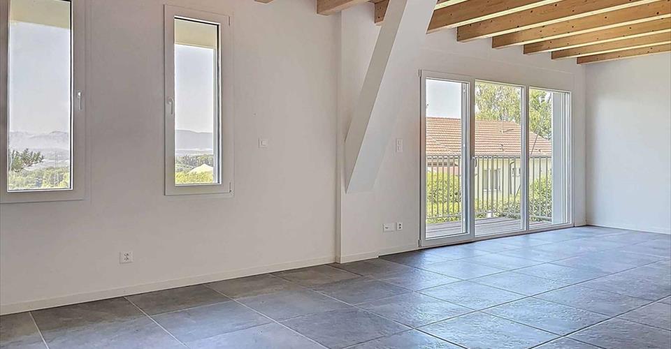 Dans le cadre bucolique et recherché de Jouxtens-Mézery, ce triplex prend place au sein d’une ancienne ferme de caractère entièrement rénovée. L’authenticité des murs anciens se marie à la modernité des aménagements, offrant un cadre de vie à la fois confortable et plein de charme. Avec ses environ 135 m² habitables, son grand jardin de plus de 550 m², un balcon et une orientation ouest, il combine des volumes confortables, une belle luminosité et des espaces en plein air permettant de profiter pleinement de l’environnement. Dès l’entrée, la disposition des pièces et la clarté des volumes créent une impression immédiate d’espace et de confort. Le rez-de-chaussée accueille la salle à manger, ouverte sur la terrasse et le jardin, assurant une continuité harmonieuse entre intérieur et extérieur. La cuisine, encore à poser, permet de créer un espace culinaire sur mesure, alliant fonctionnalité et esthétisme. Le premier étage se compose d’un salon lumineux avec accès au balcon de 6 m², d’une chambre et d’une salle d’eau équipée d’une douche, d’un lavabo et de WC. Les combles abritent deux chambres, chacune avec sa salle d’eau individuelle comprenant douche, lavabo et WC. Un lieu où confort intérieur, lumière et nature s’équilibrent en parfaite harmonie. Un cadre de vie paisible et recherché. Places de parc disponibles en sus du prix de vente affiché au prix de CHF 20’000.- par place.
