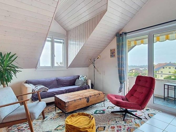Appartement traversant en attique en viager occupé sans rente. Valeur du bien: 1’400’000.- Vous ne payez que: Le bouquet: 925’000.- Rente: sans H: 85 ans et F: 86 ans Ce spacieux appartement en attique bénéficie d’un emplacement idéal : à proximité immédiate de toutes les commodités, tout en offrant un environnement calme et agréable. Il se compose d’une cuisine entièrement équipée, ouverte sur un vaste séjour baigné de lumière grâce à de grandes baies vitrées. Depuis le salon, vous accédez à un balcon de belle dimension avec une vue imprenable sur la ville et le Salève, parfait pour aménager un espace repas extérieur et profiter pleinement des beaux jours. L’espace nuit comprend trois grandes chambres confortables, un réduit bien pratique ainsi qu’une salle de douche. Un WC séparé pour les visiteurs vient compléter ce bien, pour un confort optimal au quotidien. Bien sur une cave est incluses dans le prix. Petit-Lancy ? Un quartier vivant, pratique et parfaitement connecté Situé sur la rive droite du Rhône, à seulement quelques minutes du centre-ville de Genève, Petit-Lancy est un quartier recherché qui combine parfaitement vie urbaine, confort et tranquillité résidentielle. Proche des commerces, écoles, espaces verts et parfaitement desservi par les transports publics (tram, bus, accès rapide à la gare et à l’aéroport), le secteur séduit autant les familles que les investisseurs. Avec ses parcs, ses équipements culturels et sportifs, et une atmosphère de village dans la ville, Petit-Lancy offre un cadre de vie agréable et dynamique, tout en restant à proximité immédiate des pôles économiques genevois. Vente en viager occupé : Cette formule d’acquisition représente une excellente opportunité patrimoniale. Le viager occupé vous permet de devenir propriétaire d’un bien immobilier à un prix réduit, tout en laissant à l’occupant le droit de continuer à y vivre. C’est une solution idéale pour investir sereinement dans un secteur prisé du canton de Genève, avec une plus-value à terme.