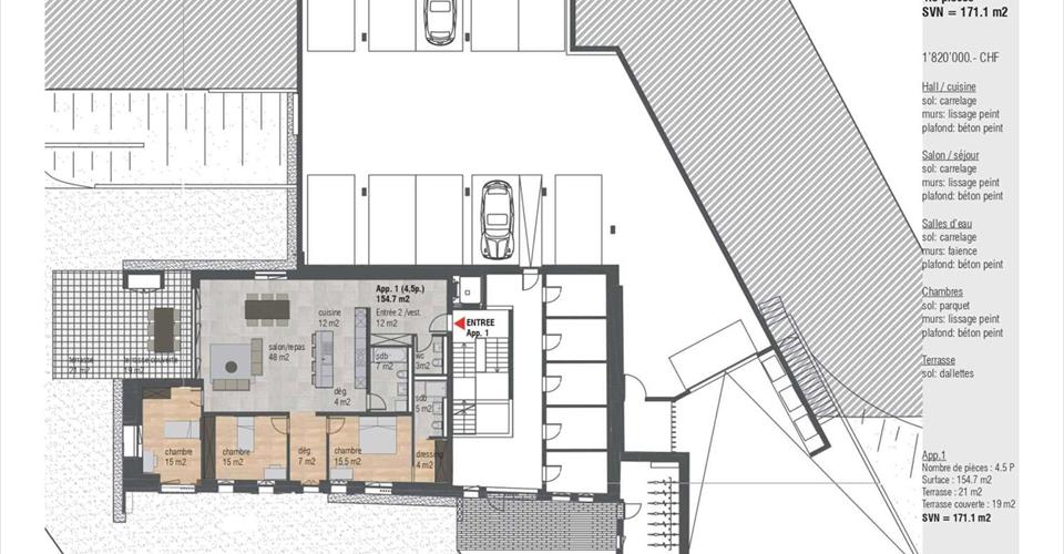Cet appartement de 4.5 pièces de 155 m2 se situe au rez-de-chaussée, il bénéficie d’une belle terrasse de 40 m2 et un grand jardin. 2 places de parc intérieures complète ce bien. Prix appartement : CHF 1’820’000.- 2 places de parc : CHF 70’000.- Prix total : 1’890’000.-