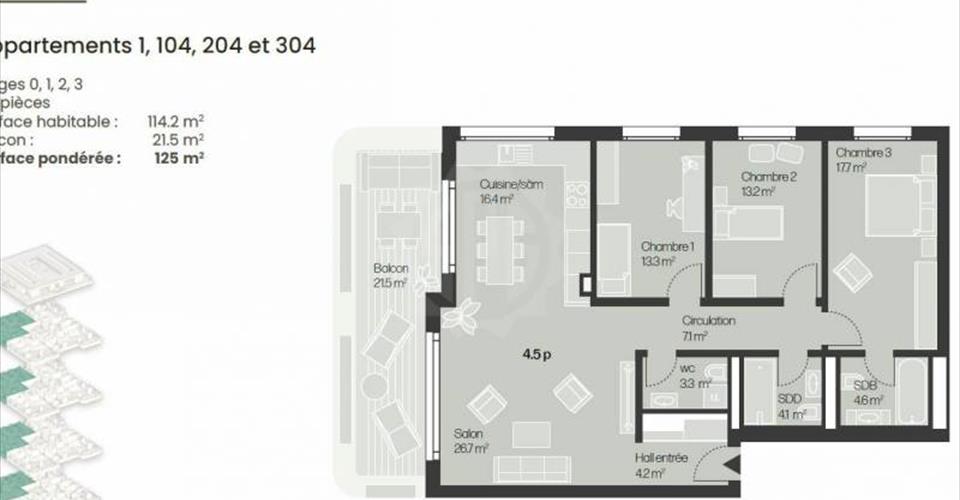 SPG a le plaisir de vous présenter en exclusivité ce superbe appartement neuf de 4.5 pièces, situé dans un quartier paisible et idéalement connecté au coeur de Lausanne. Ce spacieux appartement de 125 m² PPE offre un magnifique séjour / cuisine ouverte de 43.1 m² avec un accès à un spacieux balcon de 21.5 m², 3 belles chambres dont une splendide suite d’environ 18 m² avec sa salle de bains privative, une salle de douche/wc et un wc visiteurs. Découvrez la promotion d’appartements de 3.5 à 5.5 pièces “BEAUMONT” à Lausanne https://beaumont-lausanne.ch/ o Label Minergie P-Eco o Un cadre de vie sain et durable o Finitions haut de gamme o Livraison prévue début 2027 Contactez notre équipe de vente dès maintenant