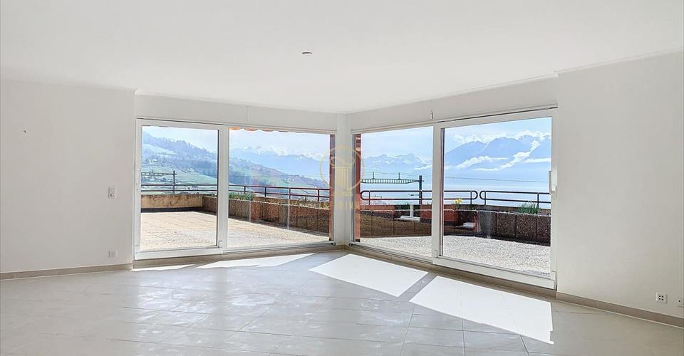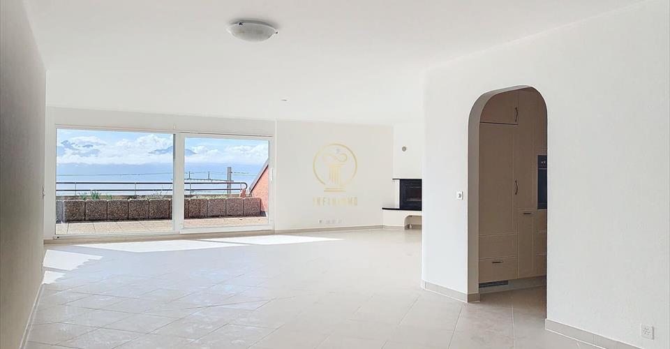 Découvrez cet appartement exceptionnel, baigné de lumière et bénéficiant d’une vue imprenable qui compte parmi les plus remarquables de la zone. S’étendant sur une superficie nette d’environ 160 m², sans compter les espaces extérieurs, son agencement a été pensé pour offrir un confort optimal : Zone de vie : Dès l’entrée, vous serez accueilli par un vestibule équipé de garde-robes encastrées, menant à un toilette pour invités, une vaste zone de stockage / buanderie et un espace de rangement supplémentaire. La propriété se distingue également par sa cuisine spacieuse séparée, une salle à manger élégante et un salon généreux avec cheminée, ouvrant sur un espace extérieur exceptionnel. Ce dernier comprend une terrasse spacieuse de 106 m², offrant une vue spectaculaire sur le lac et les montagnes ainsi qu’un jardin intimiste de 30 m² environ, et un local de jardin. Zone nocturne : Le couloir mène à un espace polyvalent avec sauna, une salle de bains, ainsi que trois chambres spacieuses. La suite parentale bénéficie d’un dressing et d’une salle de bains privative. Chacune des chambres dispose d’un accès direct à la terrasse. L’appartement a été régulièrement mis à jour avec des rénovations significatives au cours des dernières années, témoignant d’un entretien méticuleux. Le bâtiment est parfaitement entretenu, avec une rénovation de la façade en 2012 et une modernisation éco-responsable grâce à l’installation de sondes géothermiques en 2023, permettant une connexion aux pompes à chaleur pour ceux qui choisissent cette option. En complément, ce bien est vendu avec une cave, un garage fermé (n°8) et deux places de parking couvertes, disponibles pour un supplément de CHF 90’000.- Fibre optique Orientation Sud Double vitrage Prix total : Fr. 2’190’000.- N’hésitez à me contacter pour une visite afin d’apprécier les qualités de ce bien d’exception.
