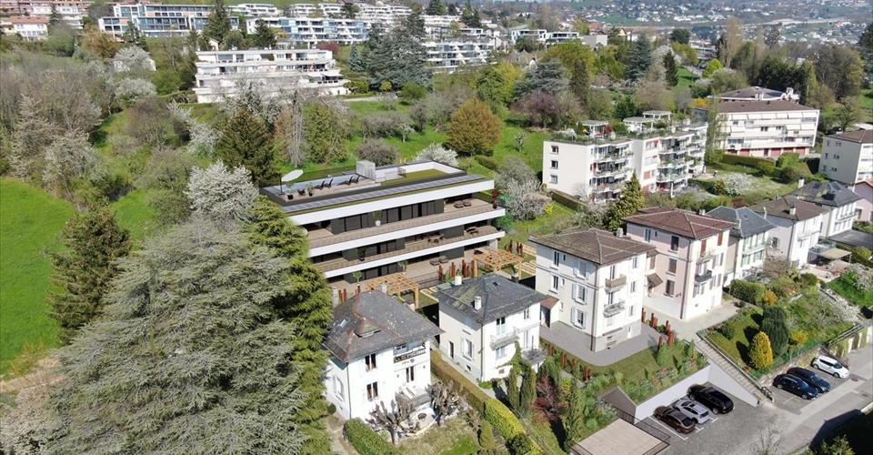 Lot 3 ? 4.5 pièces en rez-de-jardin avec jardin d’exception Un cadre de vie paisible et connecté Située dans la prestigieuse commune de La Conversion-Lutry, entre lac, montagnes et ville. Ce quartier résidentiel très prisé offre à ses résidents la tranquillité, tout en restant proche de toutes les commodités. Situé à seulement 4 minutes à pied de la gare CFF et 12 minutes du centre-ville de Lausanne. Une résidence haut de gamme, économe et élégante Labellisé Minergie, cet immeuble de seulement 8 appartements, inspiré par l’esthétique d’un bateau de croisière. Chaque logement est orienté plein sud, baigné de lumière naturelle, avec vue dégagée sur le lac et les Alpes. Le bâtiment comprend une piscine panoramique sur le toit, pour des moments de détente inégalés. Un appartement familial aux airs de villa Ce spacieux 4.5 pièces en rez-de-jardin séduit par ses volumes et son immense jardin, parfait pour les familles ou les amoureux de verdure. Il offre : – Surface habitable : 90 m² – Terrasse de 35 m² – Jardin privatif de 337 m² – Surface pondérée : 102 m² – Buanderie privative et cave – Orientation plein sud, belle luminosité – Finitions personnalisables selon vos envies Prix de vente : CHF 1’680’000.? En sus Boxe : CHF 100’000.?