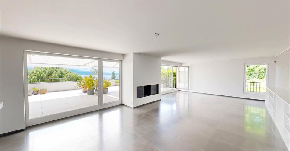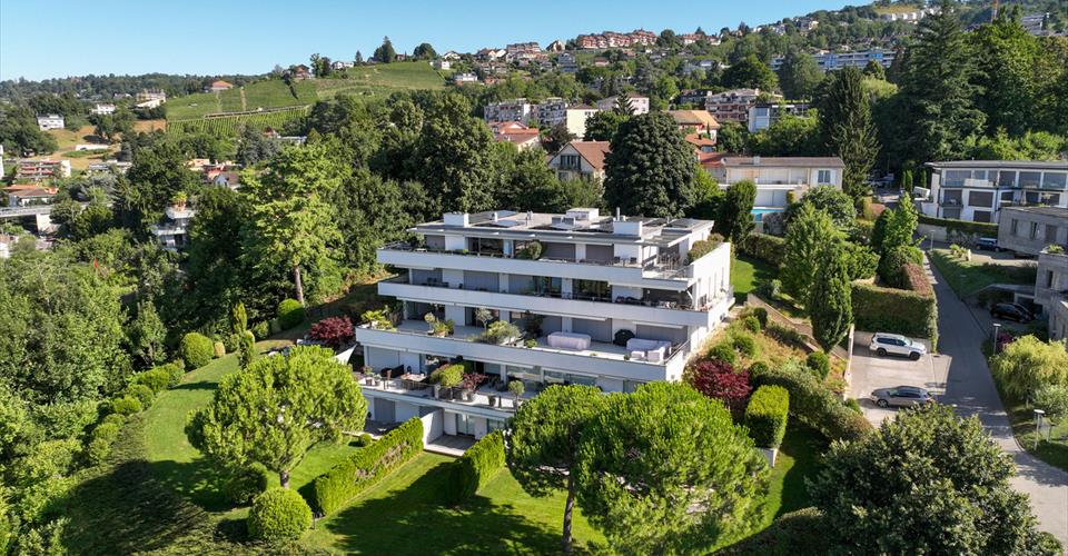 Appartement 4.5 pièces avec grande terrasse et vue panoramique sur le Léman Une combinaison d’atouts exceptionnelle Situé à la frontière du Lavaux, dans l’un des quartiers résidentiels les plus prisés de la région lausannoise, cet appartement de 4.5 pièces incarne une rare harmonie entre volume, lumière, vue et confort. Niché dans un environnement paisible, à proximité immédiate des commodités et des transports, il bénéficie d’un cadre de vie à la fois pratique et enchanteur. Construit sur une parcelle dominante de plus de 5’200 m², l’immeuble jouit d’une situation privilégiée avec un panorama spectaculaire sur le lac Léman et la chaîne alpine. Un cordon boisé en lisière de la propriété assure une intimité durable tout en renforçant le caractère verdoyant du lieu. D’une surface PPE généreuse de 185 m², l’appartement se distingue par son séjour lumineux de 65 m², prolongé par une magnifique terrasse plein sud de 80 m². Véritable pièce à vivre extérieure, cette terrasse devient un espace de détente et de convivialité, en toute saison. Côté nuit, l’appartement comprend trois chambres et trois salles d’eau, dont une suite parentale avec salle de bains privative et coin dressing, offrant à ses occupants un confort optimal et une intimité parfaitement préservée. Trois places de stationnement — deux en intérieur (CHF 45’000.–/unité) et une à l’extérieur (CHF 20’000.–) — complètent avantageusement ce bien. Outre ses atouts architecturaux, le bâtiment s’inscrit dans une démarche de transition énergétique. Il est équipé de panneaux solaires d’une puissance de 21 kW et un projet de remplacement de la centrale à mazout par un système de pompes à chaleur est prévu, entièrement financé par le fonds de rénovation existant, sans appel de fonds complémentaire. Le garage collectif est déjà pourvu d’une infrastructure de recharge pour véhicules électriques, avec la possibilité d’ajouter des bornes selon les besoins. Enfin, la commune de Lutry (La Conversion), réputée pour sa qualité de vie, son patrimoine viticole et son cadre naturel, offre l’un des taux d’imposition les plus avantageux du canton de Vaud — un atout non négligeable pour les propriétaires. Un bien rare, conjuguant situation, volume, prestations et potentiel patrimonial. À découvrir sans attendre.