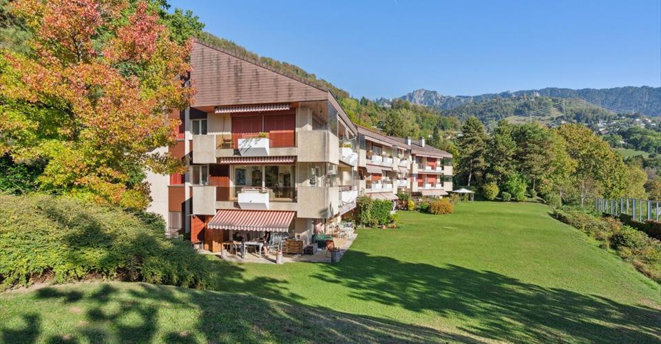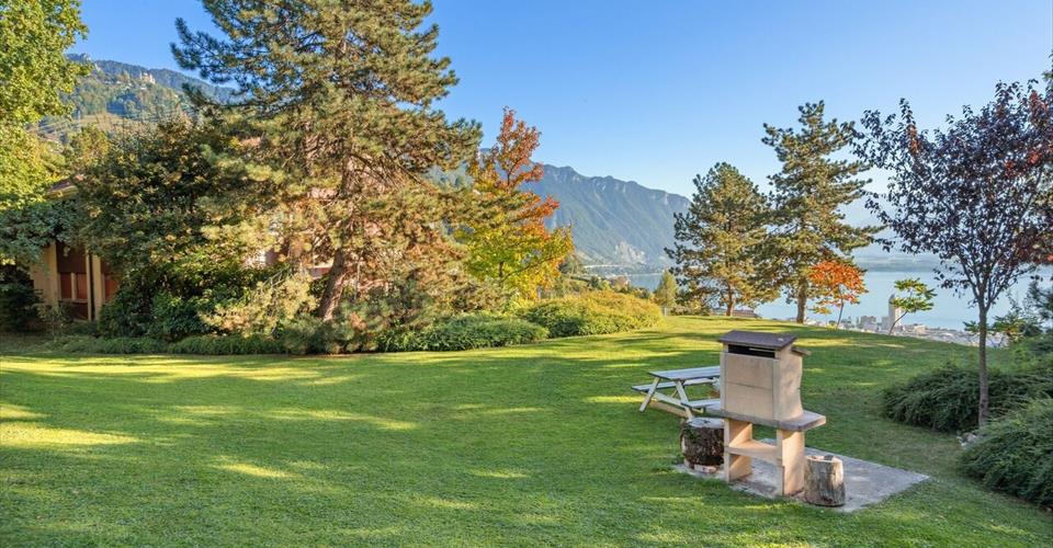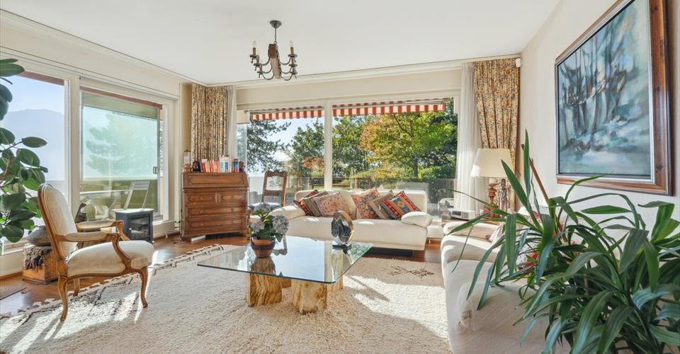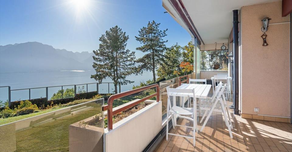 Copropriété sise à l’entrée du village de Chernex, à proximité des écoles. Elle est dotée d’un parc verdoyant et soigneusement entretenu, agrémenté d’un bel espace barbecue commun avec vue imprenable sur le lac et la Ville de Montreux. Les commerces et restaurants sont accessibles en quelques minutes à pied au centre du village. Ce bel appartement lumineux jouit d’une superbe vue sur tout le bassin lémanique et les Alpes et profite d’un généreux balcon au Sud se prolongeant sur la façade Ouest pour profiter pleinement de l’ensoleillement optimal dont il bénéficie. Nombreuses armoires encastrées, 2 salles d’eau, cuisine séparée habitable. Un local indépendant au sous-sol a été aménagé comme chambre d’appoint pour les visites, avec sa salle de douche et WC. Une cave et une place de parc complètent cette offre. Prix de vente de l’appartement : CHF 925’000.- Prix de vente de la place de parc intérieure : CHF 45’000.- Prix de vente total : CHF 970’000.-