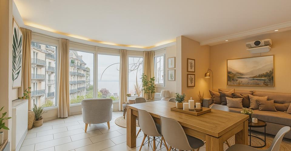 Découvrez ce superbe appartement de 4.5 pièces d’environ 149 m² pondérés (possibilité d’aménager en 5,5 pièces), idéalement implanté Grand‑Rue 8, Montreux, en plein centre-ville, à deux pas des transports publics et de toutes commodités. Atouts principaux Situation centrale : accès rapide aux transports, commerces, restaurants, écoles… Vue imprenable sur le lac Léman et les montagnes. Orientation sud avec de nombreuses baies vitrées, assurant une luminosité optimale. Matériaux de grande qualité pour la construction et les finitions, garantissant standing et durabilité. Extérieurs Terrasse arrière de 14,5 m², parfaite pour prendre un verre ou lire au soleil. Jardin/terrasse de 41 m², un véritable espace privé extérieur. Situation locative actuelle Ce logement est actuellement loué par une famille désireuse de conserver l’appartement en tant que tel, assurant une occupation stable et respectueuse des lieux. Prix & conditions Prix appartement : CHF 1’640’000.– Place de parc intérieure : CHF 50’000.– (en sus) Prix total : CHF 1’690’000.– Vente autorisée aux non-résidents. Un bien rare à Montreux, offrant confort, espace, et cadre de vie exceptionnel, parfaitement entretenu par ses locataires actuels. Pour plus d’informations ou une visite, contactez-nous dès maintenant !
