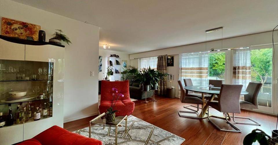 Très bel appartement doté de trois chambres à coucher et d’un balcon spacieux. Ce bien, rénové avec goût, dispose d’un grand séjour lumineux et d’une belle cheminée avec accès à un balcon, d’une surface approximative de 17 m2 entourée de verdure. Ce dernier bénéficie de trois chambres à coucher dont une avec sa propre salle de bain moderne et design, toutes, donnant plein Ouest. La seconde salle d’eau dispose actuellement d’une colonne de lavage qui a été mise en lieu et place de la douche initiale. De plus, l’appartement dispose d’une place de parking située dans le garage souterrain de la résidence, dite : PPE “Résidence les Bruyères B”. Le prix de ce très bel objet est de CHF 920’000.- pour la totalité.