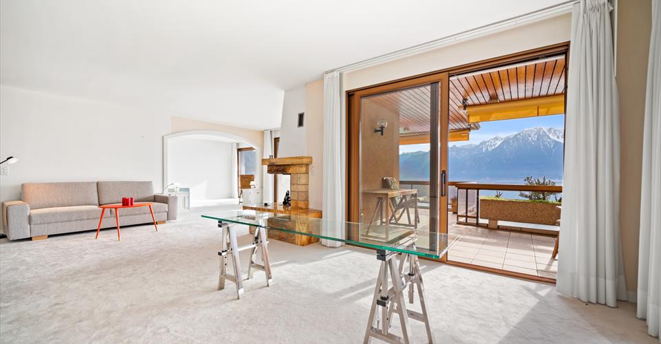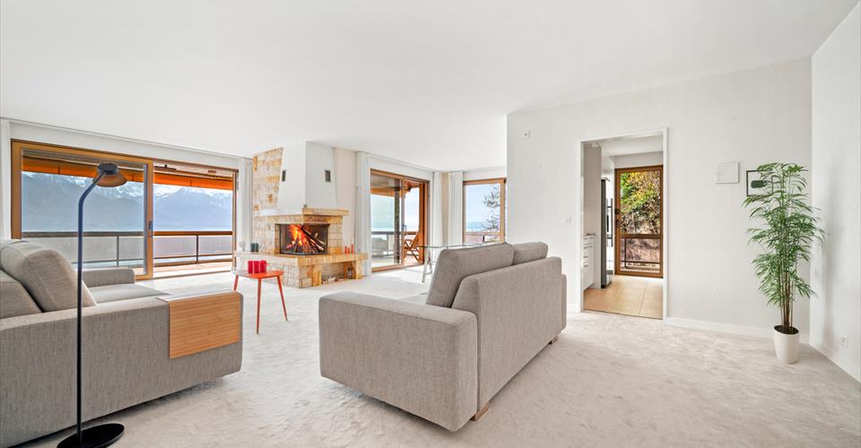 Situé dans une résidence sur les hauteurs de Montreux, cet appartement d’exception vous offre un cadre de vie prestigieux, avec une vue panoramique à couper le souffle sur le lac Léman et les Alpes. Avec une généreuse superficie de 161 m², ce bien lumineux et spacieux dispose d’un grand balcon de 52 m², vous permettant de profiter pleinement de la vue et du climat tout au long de l’année, dans un environnement calme, privé et sécurisé. L’intérieur se distingue par un vaste séjour avec cheminée, une cuisine moderne entièrement équipée, deux salles de bains, un réduit pratique et deux chambres, toutes avec un accès direct au balcon. De plus, la configuration permet d’aménager facilement une troisième chambre, offrant ainsi une grande flexibilité selon vos besoins. Les espaces communs ont récemment été entièrement rénovés, apportant une touche de modernité et de confort supplémentaire à la résidence. Une cave située au sous-sol vient compléter ce bien, tandis qu’un garage box pour deux voitures (CHF 60’000.- en supplément) et une place de parc extérieure (CHF 15’000.- en supplément) offrent un confort optimal. Cet appartement d’exception peut être acquis en tant que résidence principale, résidence secondaire ou appartement de vacances, y compris par des étrangers non-résidents, ce qui en fait une opportunité unique sur le marché.