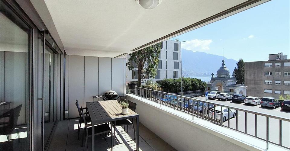 Résidence contemporaine construite au coeur d’un petit quartier urbain agréablement aménagé au centre-ville de Montreux et à 2 pas des quais. – Grand balcon, généreuse terrasse avec vue sur lac et montagnes – Luminosité optimale, grandes baies vitrées – Proche de toutes commodités – Cave et place de parc intérieure en sus – Vente aux étrangers autorisée Prix de vente de l’appartement : CHF 1’300’000.- Prix de vente de la place de parc intérieure : CHF 50’000.- Prix de vente total : CHF 1’350’000.-