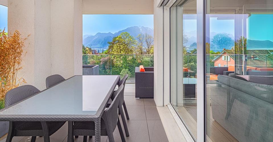 EXCLUSIVITE – Situé dans la prestigieuse commune de Montreux, à quelques minutes seulement de toutes les commodités du quotidien, Rockwell Properties a le plaisir de vous présenter ce superbe appartement de 4,5 pièces offrant confort et élégance. Érigé en 2013 avec des matériaux de qualité, cet appartement d’environ 105 m² habitables bénéficie d’une luminosité exceptionnelle et d’une agréable échappée sur le lac.Distribution : 3 chambres spacieuses, dont une suite parentale avec salle de bains attenante Un vaste séjour avec coin salle à manger donnant accès à un balcon orienté sud de 26 m² Une cuisine entièrement équipée avec accès à un second balcon Une salle de bains supplémentaire Annexes :Deux places de parking intérieures ainsi qu’une borne électrique (en sus, CHF 60’000.-) viennent compléter ce bien, accompagné également d’une cave. Les atouts Lumineux et bien orienté À proximité immédiate de toutes les commodités Matériaux et finitions de qualité
