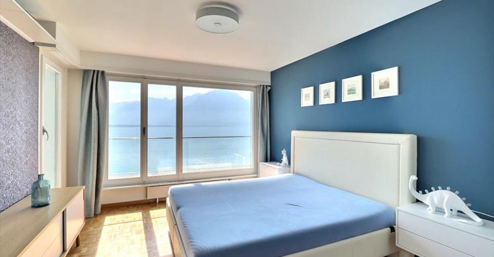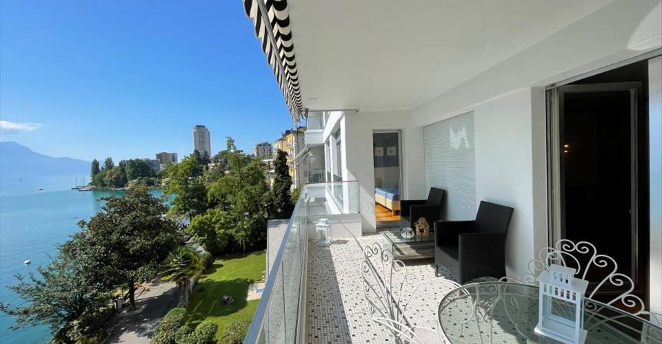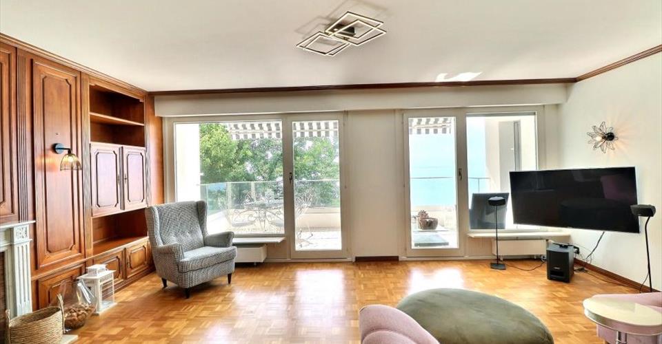 Situation unique sur les quais de Montreux pour cet appartement de 4,5 pièces, qui bénéficie d’une très belle vue sur le lac Léman et les montagnes. Distribué sur un niveau, ce bien habitable en l’état se distribue de la manière suivante: – Un grand hall d’entrée avec des armoires intégrées. – Un séjour spacieux et lumineux d’environ 33 m2 avec accès sur le balcon face au lac. – Une chambre principale face au lac avec également accès sur le balcon. – Un balcon principal d’environ 15 m2 face au lac. – Deux chambres sur l’arrière de l’immeuble. – Une belle cuisine agencée et indépendante sur l’arrière de l’immeuble avec accès sur un deuxième balcon. – Un balcon d’environ 3 m2 sur l’arrière de l’immeuble. – Une grande salle de douches attenante à la chambre 1. – Une deuxièmes salle de douches pour les chambres 2 et 3. Une cave ainsi qu’une place de parc intérieure dans le parking souterrain automatique, comprises dans le prix, viennent compléter ce bien qui peut être acheté comme résidence principale ou secondaire et également comme appartement de vacances pour des étrangers non-résidents. Les surfaces indiquées dans ce dossier, le sont à titre indicatif. L’appartement a été rénové en 2015; il est habitable en l’état. L’immeuble est également en bon état grâce à un entretien constant au fil des années. L’immeuble à 3 ascenseurs qui permettent d’accéder aux différents niveaux de l’édifice, notamment à la grande piscine couverte du rez-de-chaussée inférieur pour ensuite sortir sur le balle promenade des quais fleuris de Montreux. Le centre de Montreux et toutes les commodités de perle de la Riviera vaudoise sont à quelques minutes à pied en passant par les quais. L’autoroute de Montreux est atteinte en moins de 10 minutes, permettant ainsi de partir rapidement sur les grands axes routiers en direction de Lausanne, Genève et son aéroport international à environ 1 heure de route, Fribourg, Berne, le Valais ainsi que les stations de skis vaudoises et valaisannes.