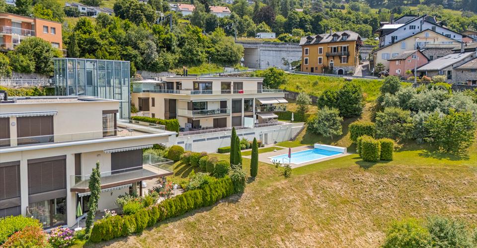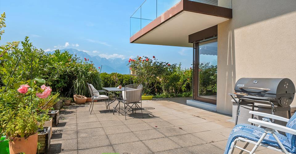 Appartement de 4.5 pièces avec grand jardin et piscine – Montreux Nichée sur les hauteurs verdoyantes de Montreux, la Résidence abrite ce superbe appartement de 4.5 pièces (construction 2003) dont la véritable signature est le calme absolu et la qualité de vie en extérieur. Son exposition Sud‑Ouest inonde la terrasse et le vaste jardin privé de lumière naturelle, tandis que les pièces restent agréablement tempérées grâce aux avancées couvertes et à la végétation environnante. Seuls quelques copropriétaires partagent cette résidence intimiste, garantissant une atmosphère sereine et conviviale. Distribution Hall d’accueil avec armoires intégrées Cuisine semi‑ouverte, fonctionnelle et conviviale Séjour & coin repas lumineux, communiquant par de larges baies vitrées avec la terrasse et le jardin Trois chambres confortables, toutes avec accès direct à l’extérieur dont une grande suite parentale avec salle de bains attenante et dressing Salle de bains supplémentaire WC visiteurs Atouts majeurs Vaste jardin privatif d’angle : idéal pour se détendre, recevoir ou laisser jouer les enfants en toute sécurité Terrasse couverte accessible depuis chaque pièce principale Piscine extérieure à débordement, exposée plein sud et rarement fréquentée – parfaite pour des baignades en toute tranquillité Résidence à taille humaine (peu de logements), sécurisée et entourée de verdure Ensoleillement optimal, tout en préservant la fraîcheur intérieure grâce aux zones ombragées Aire de jeux pour enfants au sein du parc Accès direct au garage souterrain et places visiteurs Situation À seulement quelques minutes en voiture ou en transports publics du centre animé de Montreux, de ses commerces, écoles et accès autoroutiers, ce bien conjugue la proximité des commodités et la douceur d’un environnement nature. Cet appartement est la solution idéale pour les amateurs de quiétude et de verdure, souhaitant profiter d’un extérieur généreux et d’équipements de standing, sans renoncer à la praticité de la vie urbaine.