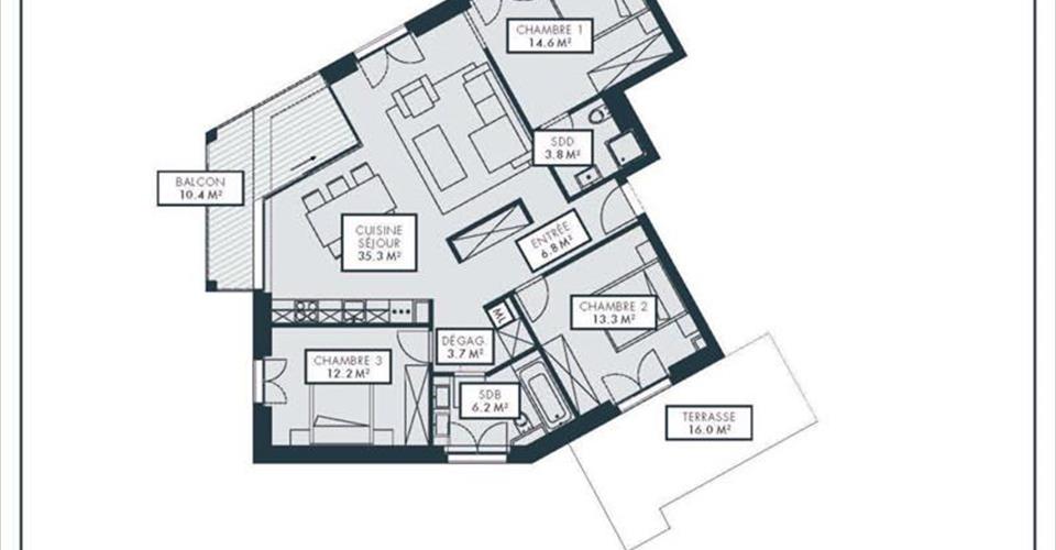 Déjà 95% de Vendus Nouveau projet en plein Centre-Ville de Montreux à 1 min. à pied de tout ! “Atrium” Montreux est un projet de 44 appartements en vente au cœur du quartier Belle Époque, à la Rue de l’Eglise-Catholique. La livraison des appartements est prévue au plus tard pour fin février 2027. Le projet composé de 4 bâtiments à taille humaine s’intègre parfaitement au centre historique, joyau d’élégance et d’histoire à l’architecture Belle Époque. En son centre se trouve un espace de détente verdoyant avec place de jeu. Un grand parking permettra à chaque appartement de bénéficier de places de parc intérieures directement accessibles par ascenseur. Labellisés Minerge P, les bâtiments répondront aux normes énergétiques d’aujourd’hui et de demain. Les finitions intérieures sont à choix selon descriptif du promoteur. Le lot No 43 ici proposé est un appartement de 4.5 Pièces avec balcon et grande terrasse ouverte sur l’Atrium au 2ème étage du bâtiment 4 (rez supérieur côté Atrium façade Sud). Il propose une surface habitable de 99 m2 hab. ainsi qu’un balcon de 10.4 m2 et une grande terrasse de 16 m2 orientée Sud. Sa distribution intérieure est la suivante : – Hall d’entrée avec armoire penderie – 1 grand séjour / salle à manger de 33 m2 avec accès au balcon – 1 cuisine ouverte totalement agencée – 1 chambre à coucher de 14.6 m2 avec salle de douche/wc attenante – 1 chambre à coucher de 13.3 m2 avec accès à la terrasse sur l’Atrium – 1 chambre à coucher de 12.2 m2 – 1 salle de bain / wc L’appartement bénéficie d’une cave ainsi que de 2 places de parc intérieures, ces dernières étant vendues en sus. Que vous soyez à la recherche d’un espace confortable pour vivre seul, d’un logement chaleureux à partager ou d’un cocon familial spacieux, Atrium Montreux offre une large variété d’appartements pour répondre à vos besoins. Tous bénéficient d’un grand balcon ou d’une loggia. Une brochure détaillée est à disposition. Pour renseignements ou visite : Madame Lucrèce CONSTANTIN