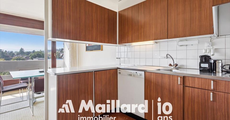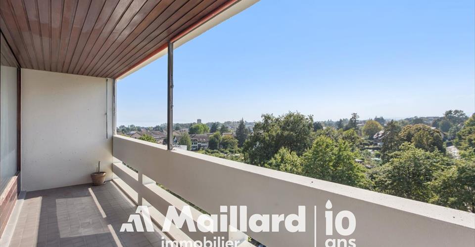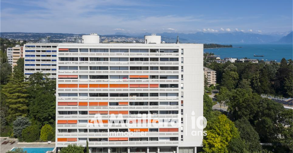 Vue lac pour ce 4.5 pièces à rénover dans résidence avec piscine Maillard Immobilier vous propose en exclusivité un appartement traversant de 4.5 pièces, orienté Est-Ouest, disposant de trois balcons. Toutes les pièces s’ouvrent sur l’extérieur. Situé au 5ème étage, il bénéficie d’une jolie vue sur le lac, les Alpes et le Mont-Blanc. Une rénovation complète est à prévoir. Résidence de standing érigée en 1971 avec des matériaux alliant confort, sécurité et modernité, très avant-gardiste pour son époque. Le hall d’entrée en marbre, avec deux ascenseurs, en témoigne. L’immeuble dispose également d’un service de conciergerie à demeure. Deux piscines sont à disposition des résidents, ainsi qu’un espace fitness, une salle de jeux et un espace commun dédié aux réceptions privées des habitants. Ce bien est idéal pour des acquéreurs à la recherche d’espace, de confort de vie et de sécurité, dans un écrin de verdure tout en étant en milieu urbain. Il s’agit d’une adresse prisée et de qualité, offrant le parfait équilibre entre tranquillité et proximité des commodités, tout en restant connecté à la vie citadine sans en subir les nuisances. Situation de premier ordre dans la très recherchée ville de Morges. A proximité immédiate des écoles, des transports publics, de l’hôpital et non loin des commerces. Prix de l’appartement : CHF 990’000.- Prix de la place de parc intérieure : CHF 35’000.- Prix de vente total : CHF 1’025’000.- Ne laissez pas passer cette opportunité unique sur le marché immobilier morgien. Contactez-nous dès maintenant pour organiser une visite. Aline Jaquier