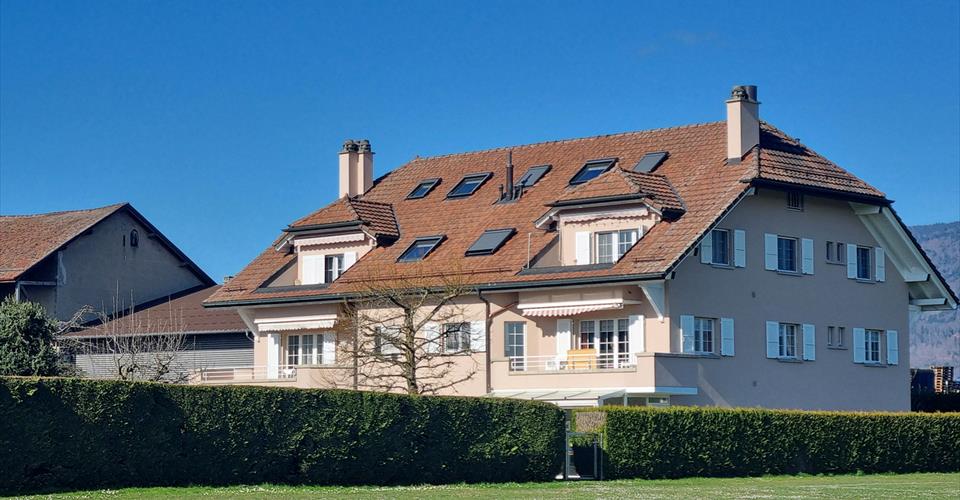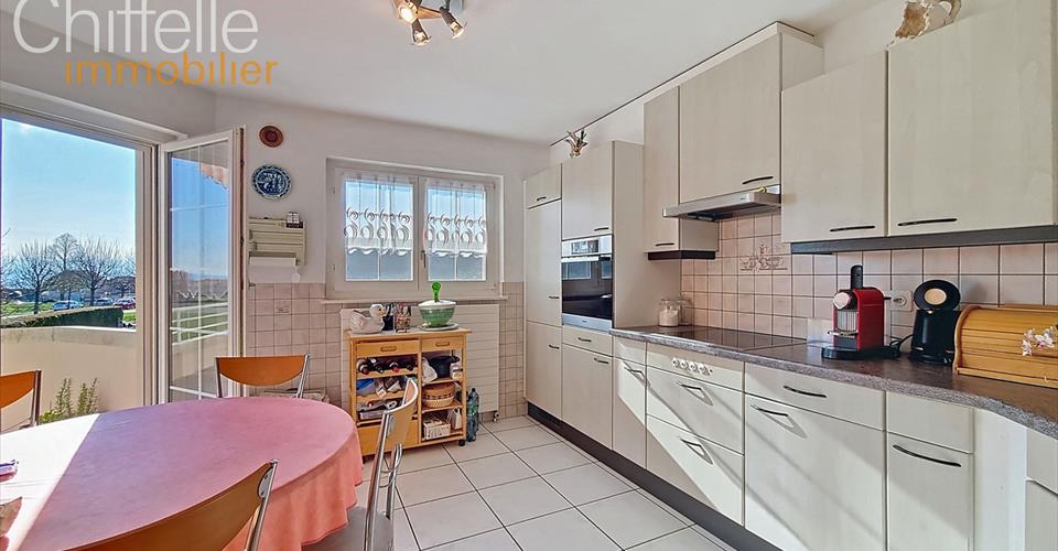 Pampigny, 15 min. de Morges Calme, lumière et confort ! Ce très bel appartement de 4,5 p. de 110 m2 pondérés, idéal pour accueillir une famille avec enfants, se trouve à proximité immédiate des écoles dans une petite PPE composée de 6 logements construite en 1993 et rénovée en 2012. Le hall d’entrée dispose d’armoires de rangement ainsi que d’un WC visiteurs. Le séjour est spacieux et dispose d’un accès direct au grand balcon orienté sud-est. La cuisine est lumineuse et habitable, elle a été partiellement rénovée incluant l’électro-ménager. La distribution des chambres est très bien pensée, elles sont privatives et desservies par une belle salle de bain et douche. L’appartement est libre de suite et se trouve dans un très bon état, aucun travaux nécessaires avant le déménagement. Une cave de de 9 m2, une place de parc en sous terrain (Frs 30’000.-) et une place extérieure (20’000.-) complètent ce bien. Infos et visites Vincent Guex