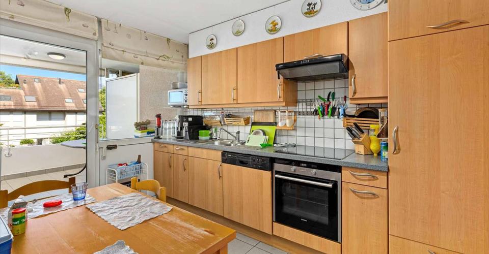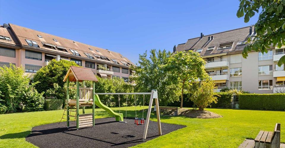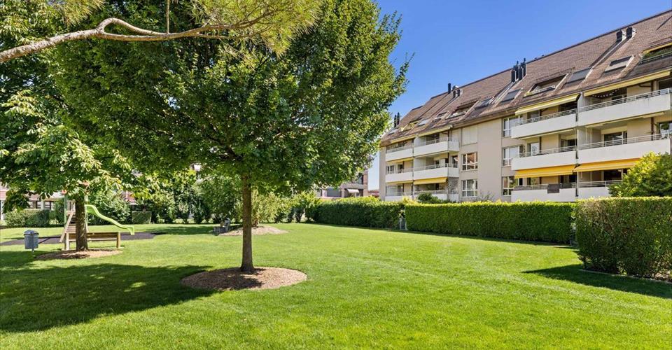 Situé dans l’un des quartiers les plus recherchés de Nyon, cet appartement bénéficie d’un environnement idéal alliant proximité des commodités et calme verdoyant. Ce cadre privilégié séduit particulièrement les familles, grâce à son atmosphère conviviale, ses espaces verts et ses nombreuses places visiteurs. Vous profitez ainsi d’un équilibre parfait entre vie urbaine et nature. Au deuxième étage d’un immeuble construit en 2002 et parfaitement entretenu, cet appartement de 4,5 pièces offre une surface PPE d’environ 116 m² . Son agencement a été pensé pour une vie familiale confortable : – 3 chambres à coucher bien proportionnées – Un vaste séjour lumineux ouvrant sur un grand balcon de 11,5 m², orienté ouest, offrant une jolie vue dégagée sur la verdure – Une cuisine fonctionnelle avec accès balcon – Une salle de bains avec buanderie et une salle de douche – Grande cave – 2 places de parc intérieures au prix de CHF 40’000 chacune L’appartement est chauffé au gaz par radiateurs et bénéficie d’une excellente luminosité ainsi que d’un cadre paisible dans un quartier familial. Cet appartement séduit par son emplacement privilégié, son cadre verdoyant et familial, et ses espaces lumineux adaptés à la vie de tous les jours. Une opportunité rare dans un quartier recherché de Nyon.