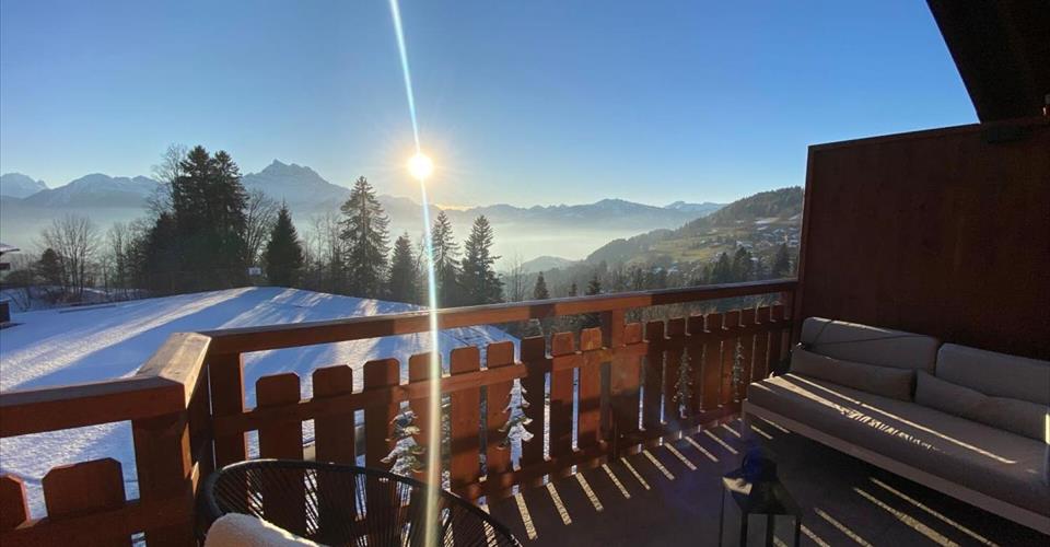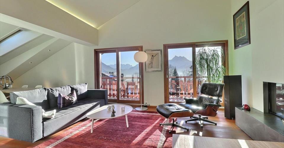 Ce bien au style moderne est à quelques minutes en voiture du centre de la station de Villars, des commerces et de la gare. Une vue panoramique sur les Alpes offre un environnement calme et ensoleillée. L’ascenseur privé arrive directement au sein de l’appartement. DESCRIPTION : APPARTEMENT 4.5 PIÈCES Hall d’entrée avec placards, ascenseur WC visiteurs Chambre double avec placards et porte – fenêtre menant au balcon Nord Chambre double avec placards; salle de bain attenante avec douche et baignoire; porte-fenêtre menant au balcon Nord Séjour avec cheminée; deux portes-fenêtres menant au balcon Sud Bibliothèque murale en bois jusqu’au plafond avec un escalier menant au sur-comble Cuisine ouverte sur le séjour et la salle à manger entièrement équipée Sur-Comble, 42 m2, surface habitable 28 m2 (hauteur 1m30) Bureaux Bibliothèque Chambre double avec fenêtres Nord et un large velux; salle de bain attenante avec douche Charges annuelles 2024 : CHF 5’850.– + chauffage CHF 3’510.– + fonds de rénovation CHF 6’630.–+garage 309.50 Ce document n’a aucune valeur contractuelle, les informations présentées ne sont données qu’à titre indicatif et ne font pas office de contrat.
