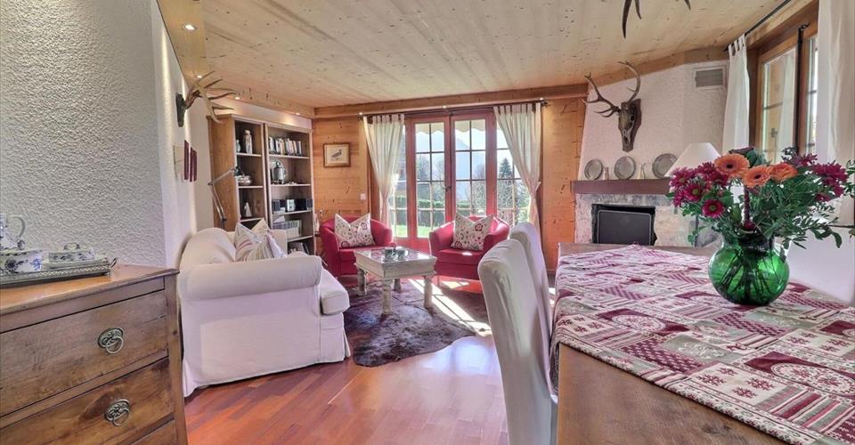 Appartement situé aux Ecovets, dans une copropriété de 3 appartements seulement, à quelques minutes en voiture du centre de Villars, bénéficiant d’un environnement calme et d’une magnifique vue panoramique sur les Alpes. DESCRIPTION APPARTEMENT 4.5 PIECES : Hall d’entrée avec placards Séjour, salle à manger avec cheminée et portes-fenêtres menant à la terrasse Sud et Ouest Cuisine entièrement équipée avec fenêtre Ouest Chambre double avec porte-fenêtre menant à la terrasse Est, placards et salle de bain en suite avec douche Chambre double avec porte-fenêtre menant à la terrasse Sud et placards Chambre double avec porte-fenêtre menant à la terrasse Est et placards Salle de bain avec baignoire WC visiteurs L’appartement a été rénové en 2013 et le chauffage a été changé en 2020. Usage du jardin privatif selon servitude. Un garage box pour un supplément de CHF 25’000.– Charges annuelles 2024: Chf 4’680.– + Chauffage Chf 1’320.– + Fonds de rénovation Chf 2’100.– + Parking Chf 405.– Ce document n’a aucune valeur contractuelle, les informations présentées ne sont données qu’à titre indicatif et ne font pas office de contrat.
