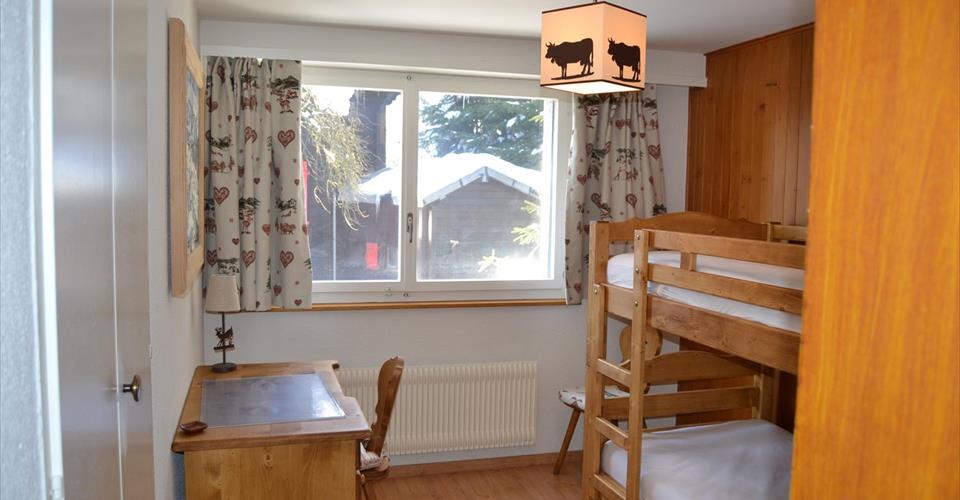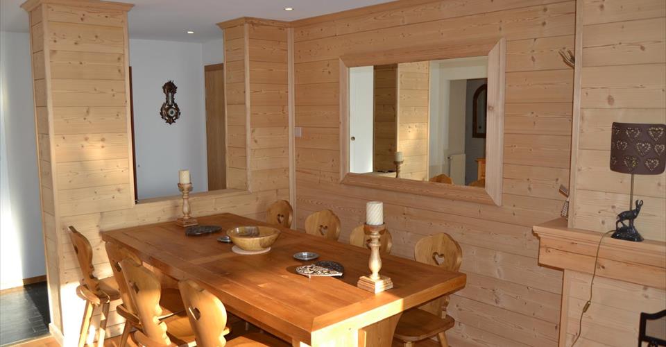 Hall d’entrée, living avec cheminée et coin repas, cuisine équipée, 3 chambres, 1 bains-WC, 1 douche-WC. Balcon Sud et Ouest d’environ 31 m2 avec coin barbecue. Dépendances : Cave, galetas, buanderie, local à skis. Divers : Très bel appartement avec beaucoup de charme. Le chalet se trouve à proximité immédiate du centre station des commerces et du ski. Belle vue sur les montagnes. Accès facile en toute saison. D’importantes rénovations du bâtiment ont eu lieu en 2015 (toiture, isolation énergétique, …). Possibilité d’acheter un parking extérieur fr. 30’000.00 Possibilité d’acheter tout ou partie du mobilier. Achat en Société Immobilière par actions.